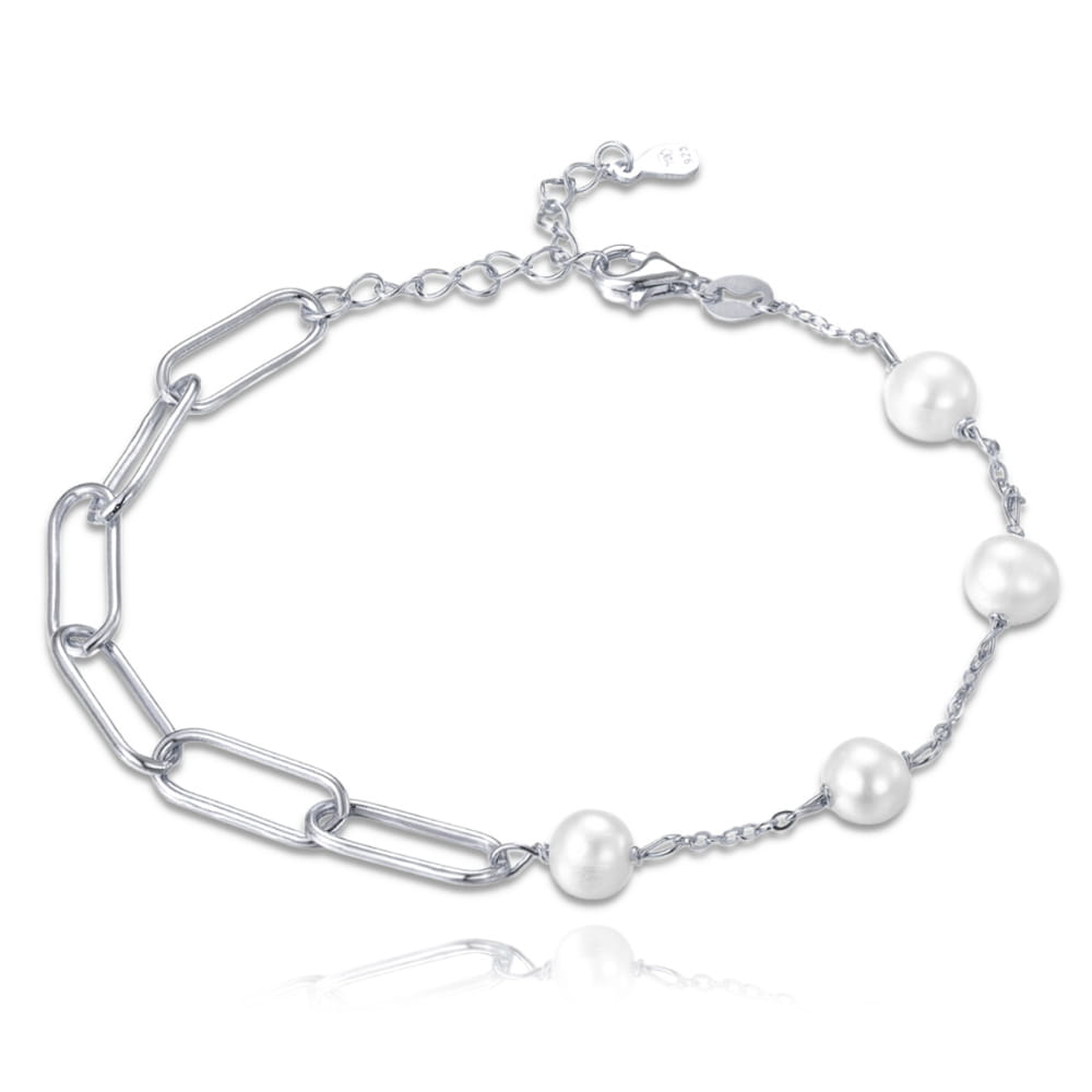 MINET - Ag925 - NATURALNA PERŁA - Srebrna bransoletka