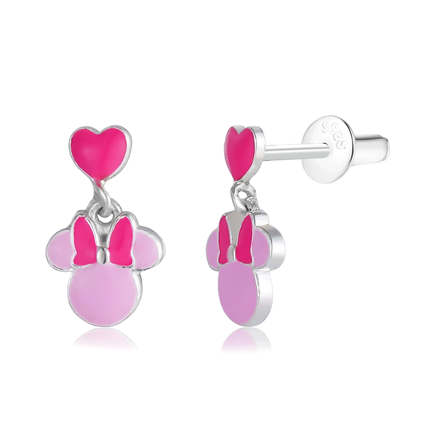 DISNEY - Minnie Mouse - Ag925 - Srebrne kolczyki z różową emalią