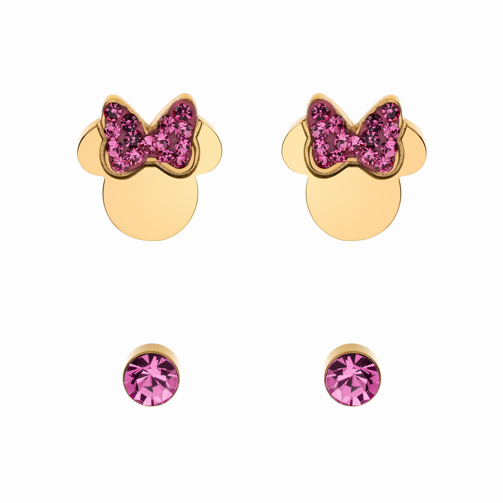 DISNEY - Minnie Mouse - Pozłacane stalowe kolczyki z różowymi cyrkoniami