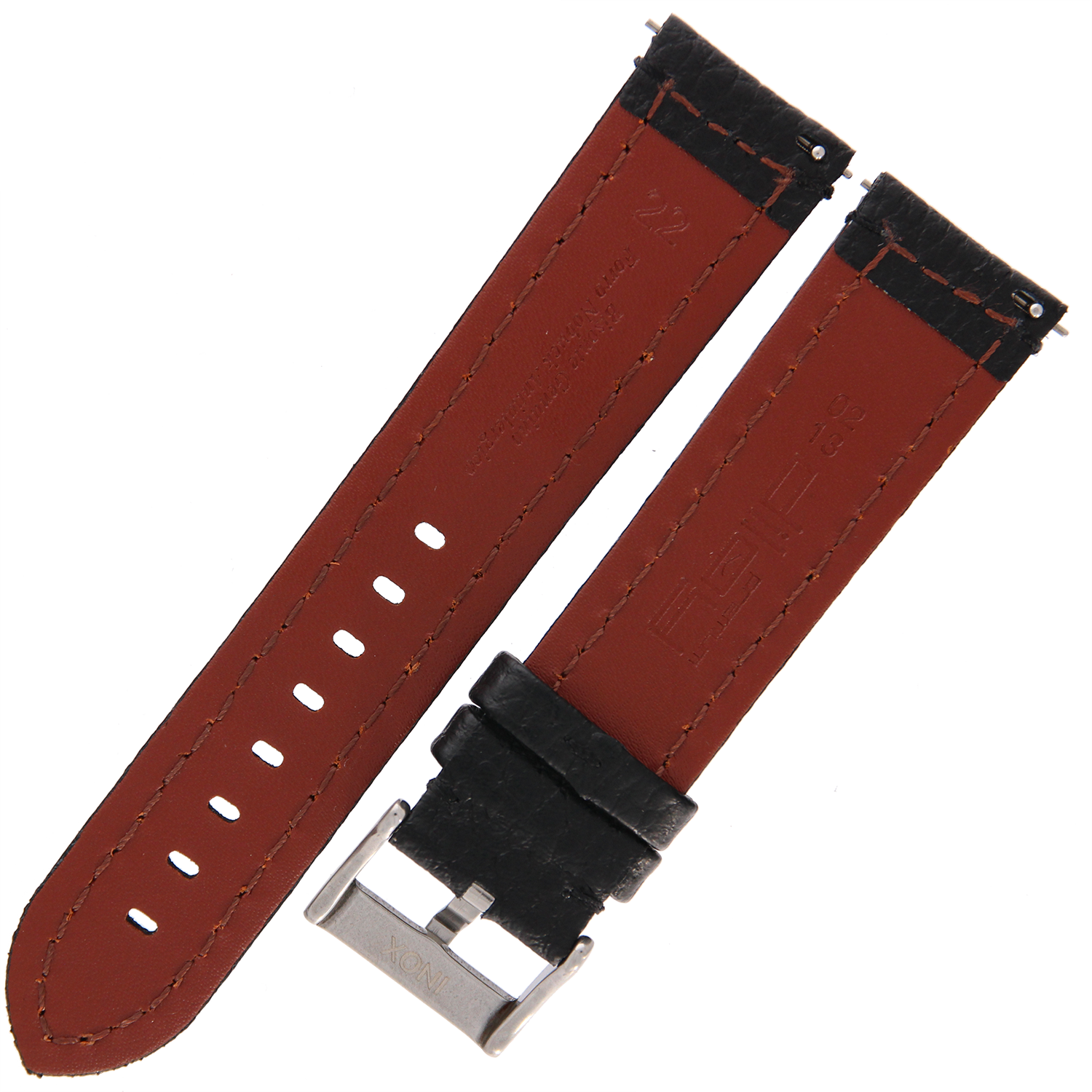 DILOY 394 - CZARNY - 22mm - Skórzany pasek do zegarka o strukturze bizona