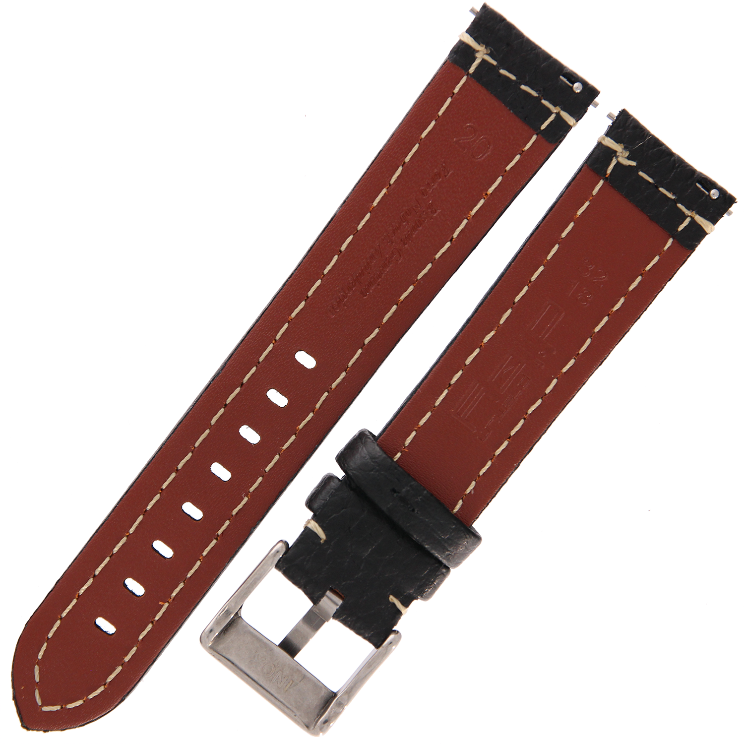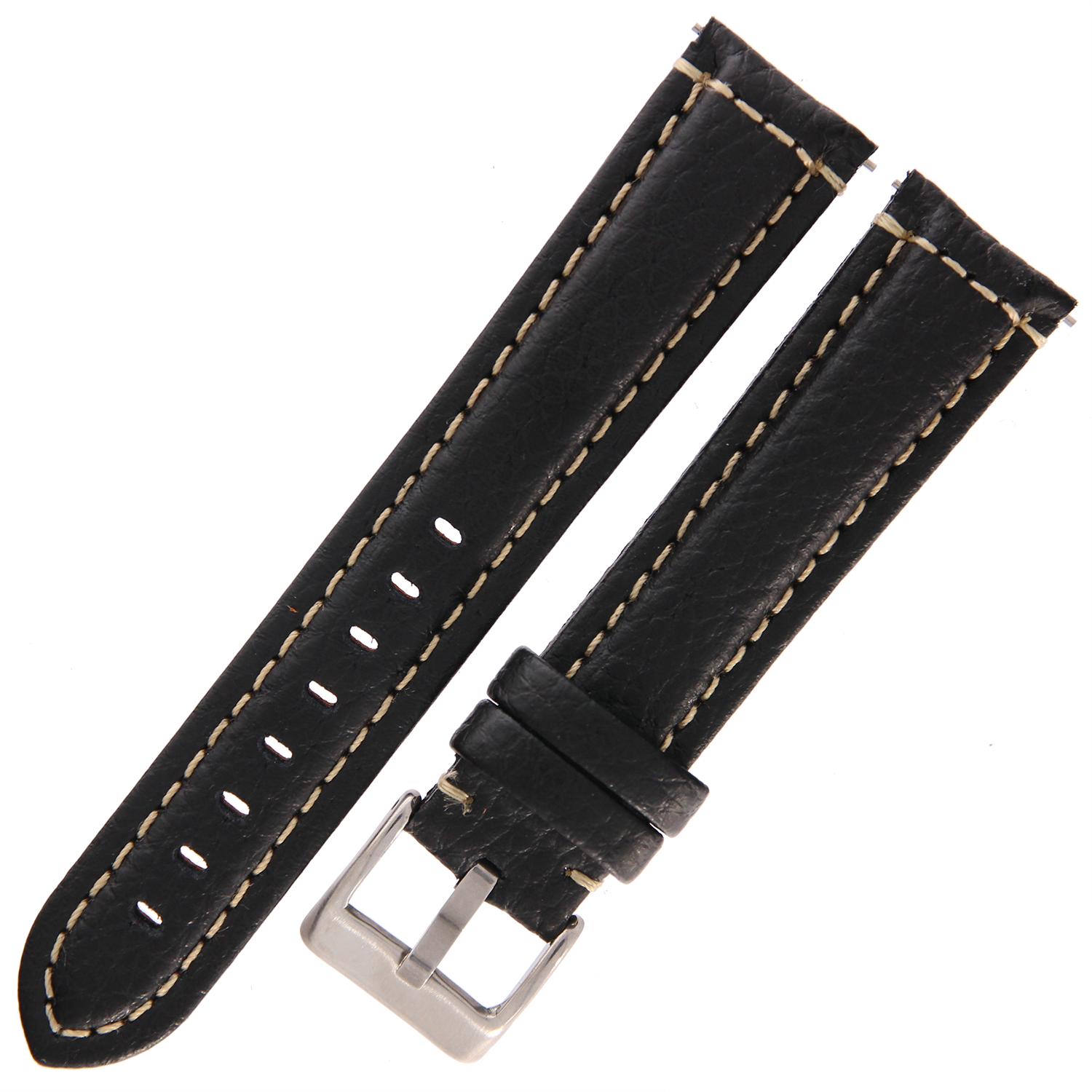DILOY 394 - CZARNY/białe - 20mm - Skórzany pasek do zegarka o strukturze bizona