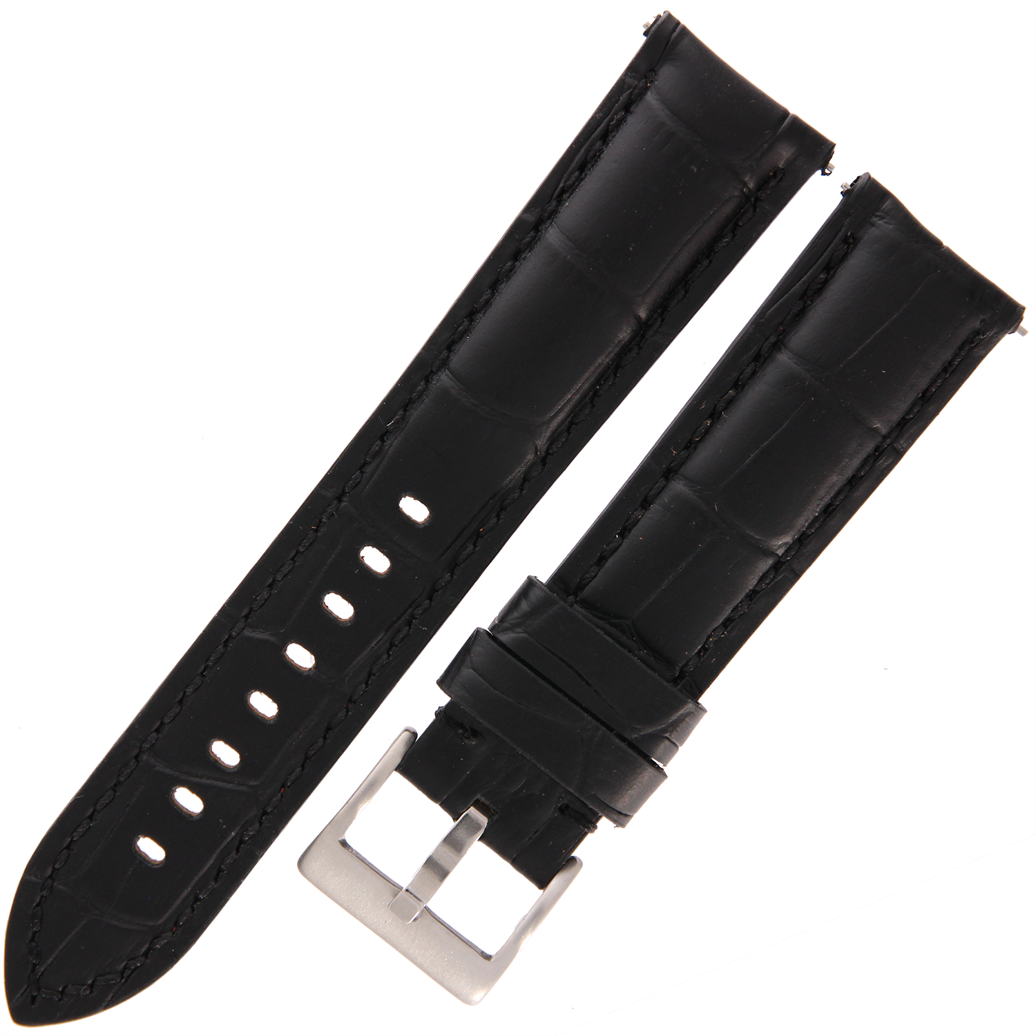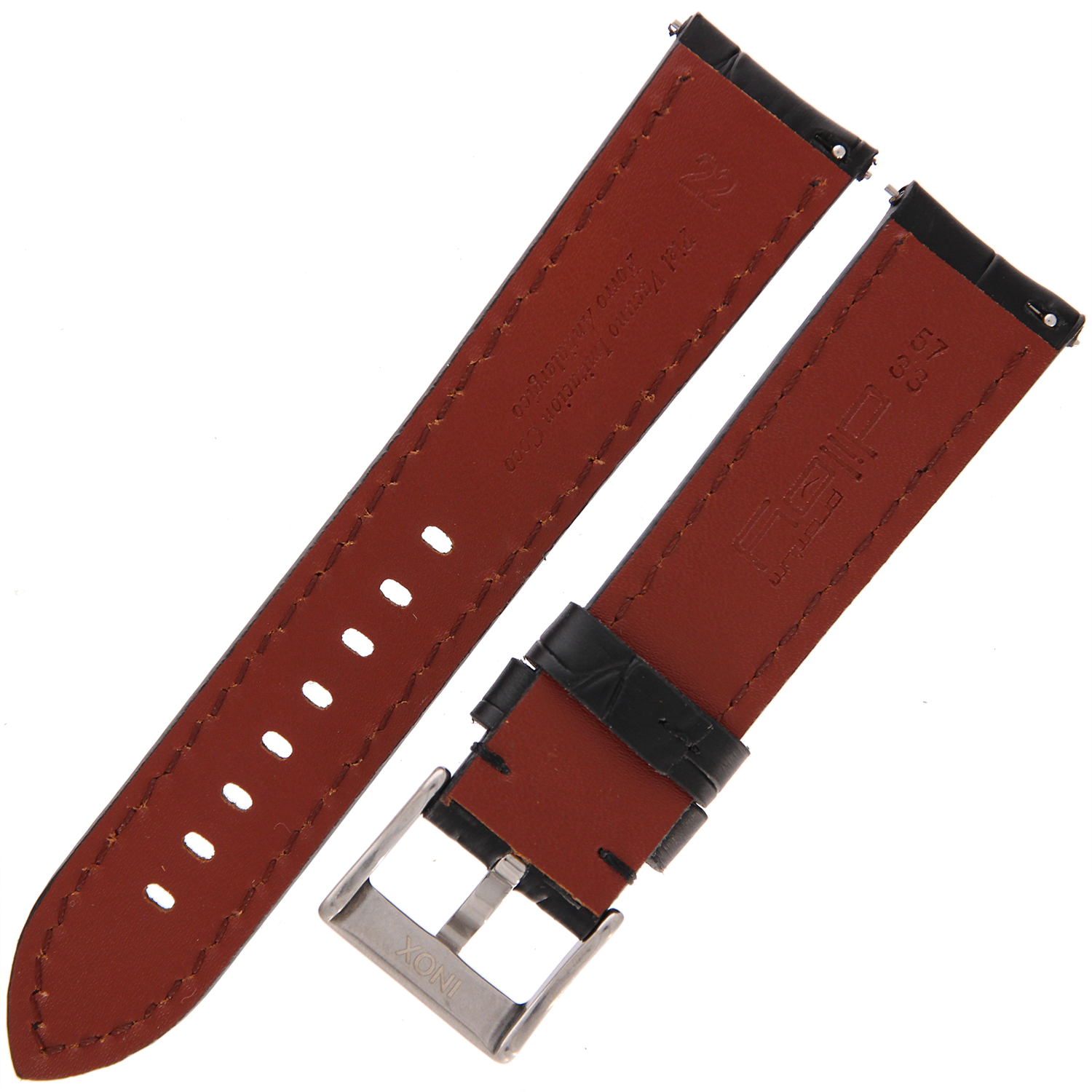 DILOY 395 - CZARNY - 22mm - Skórzany pasek do zegarka o strukturze krokodyla