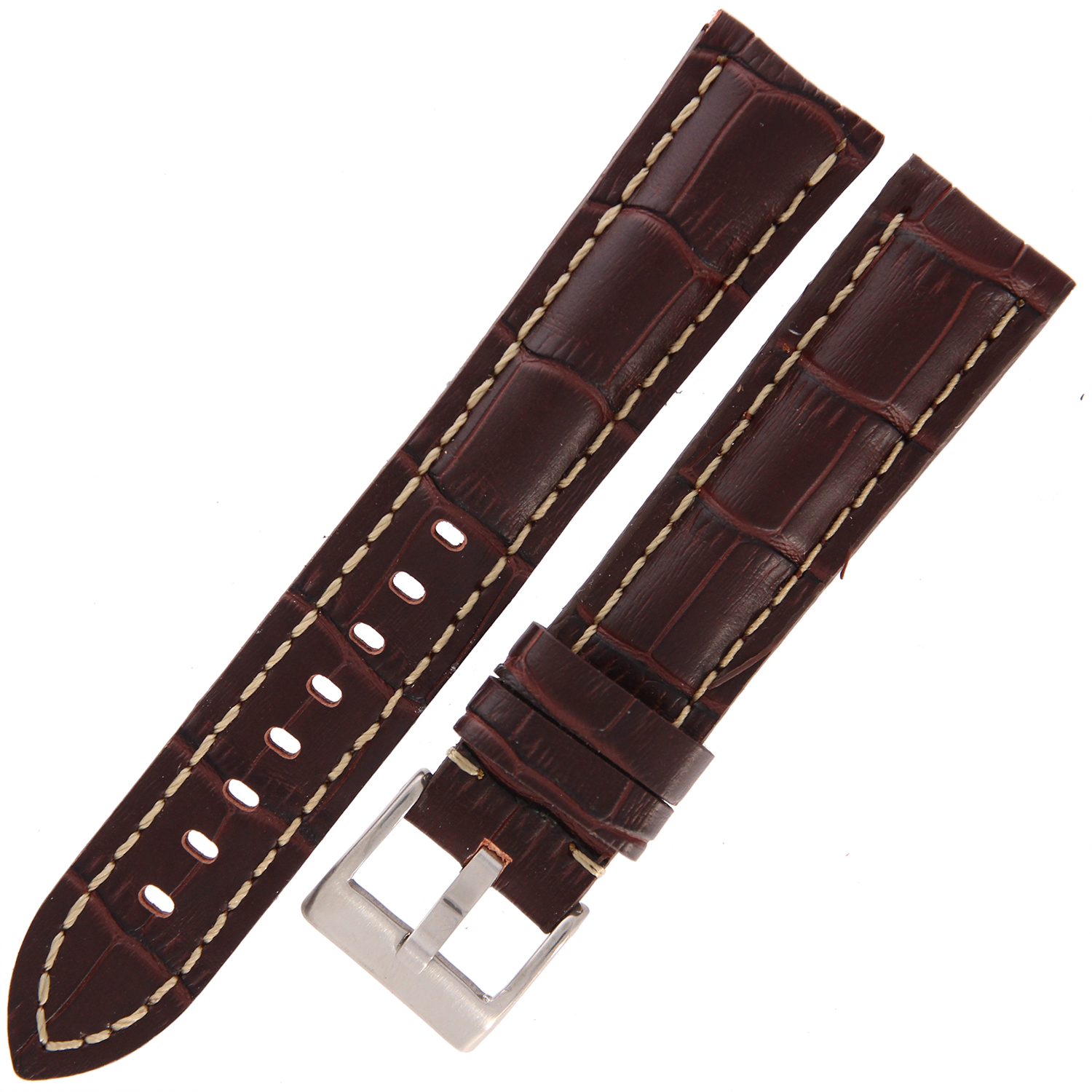 DILOY 395 - CIEMNY BRĄZ/białe - 20mm - Skórzany pasek do zegarka o strukturze krokodyla