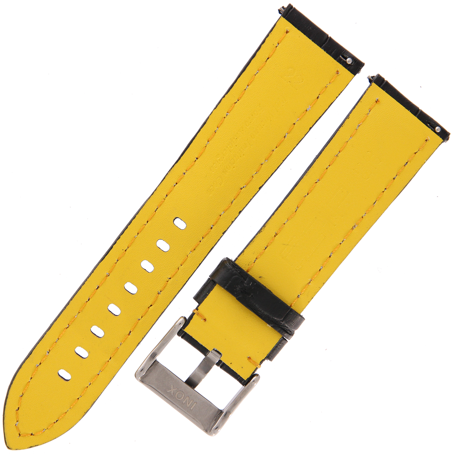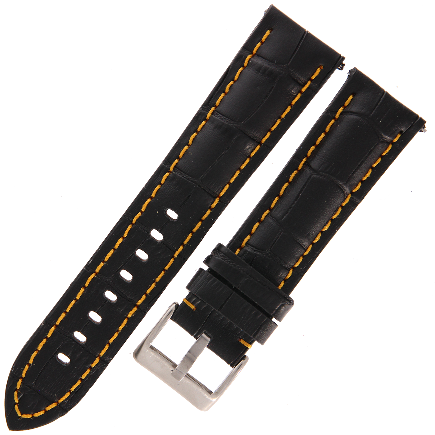 DILOY 395 - CZARNY/żółte - 22mm - Skórzany pasek do zegarka o strukturze krokodyla