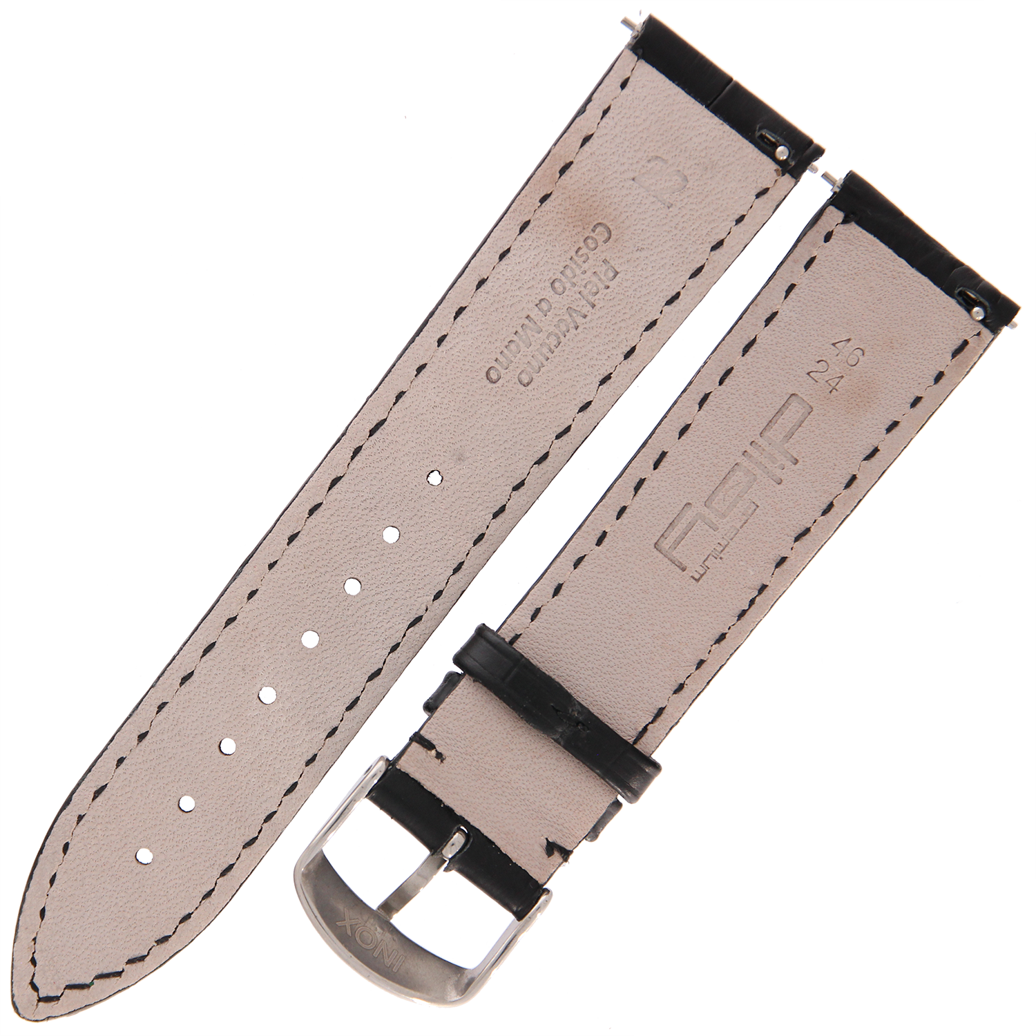 DILOY 424 - CZARNY - 22mm - Skórzany pasek do zegarka o strukturze krokodyla