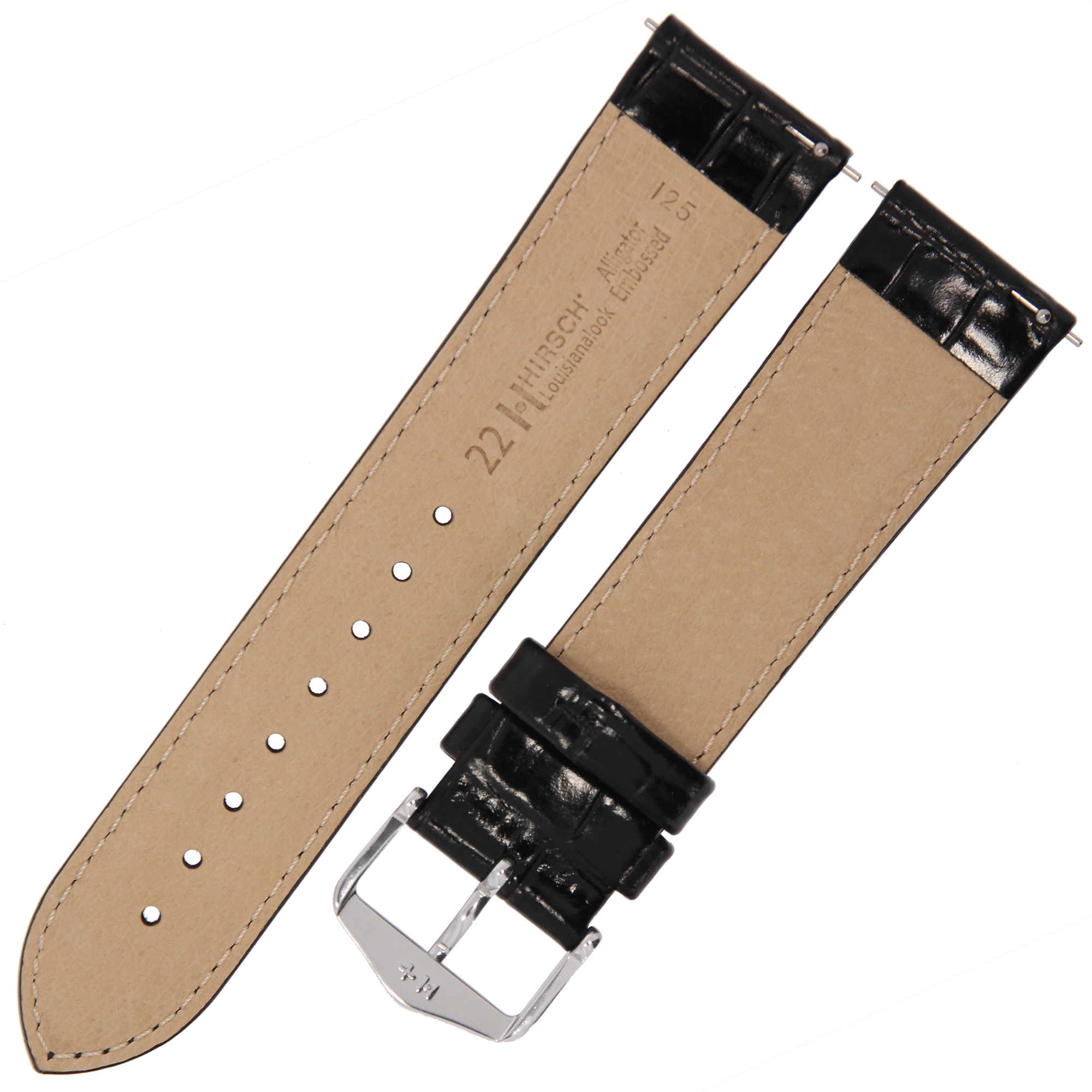 HIRSCH Louisianalook L - CZARNY - 22mm - Skórzany pasek do zegarka