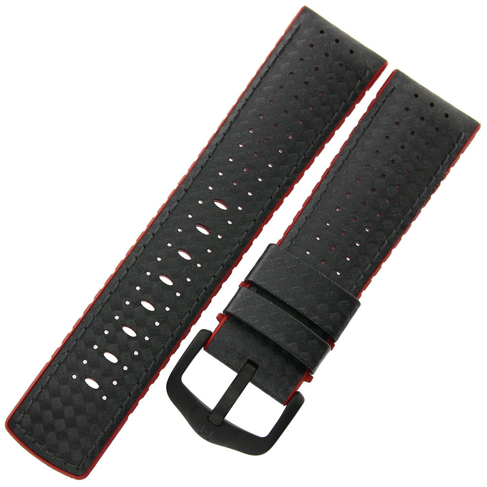 HIRSCH Ayrton L - CZARNY/Czerwony - 24mm - Skórzano-kauczukowy pasek do zegarka