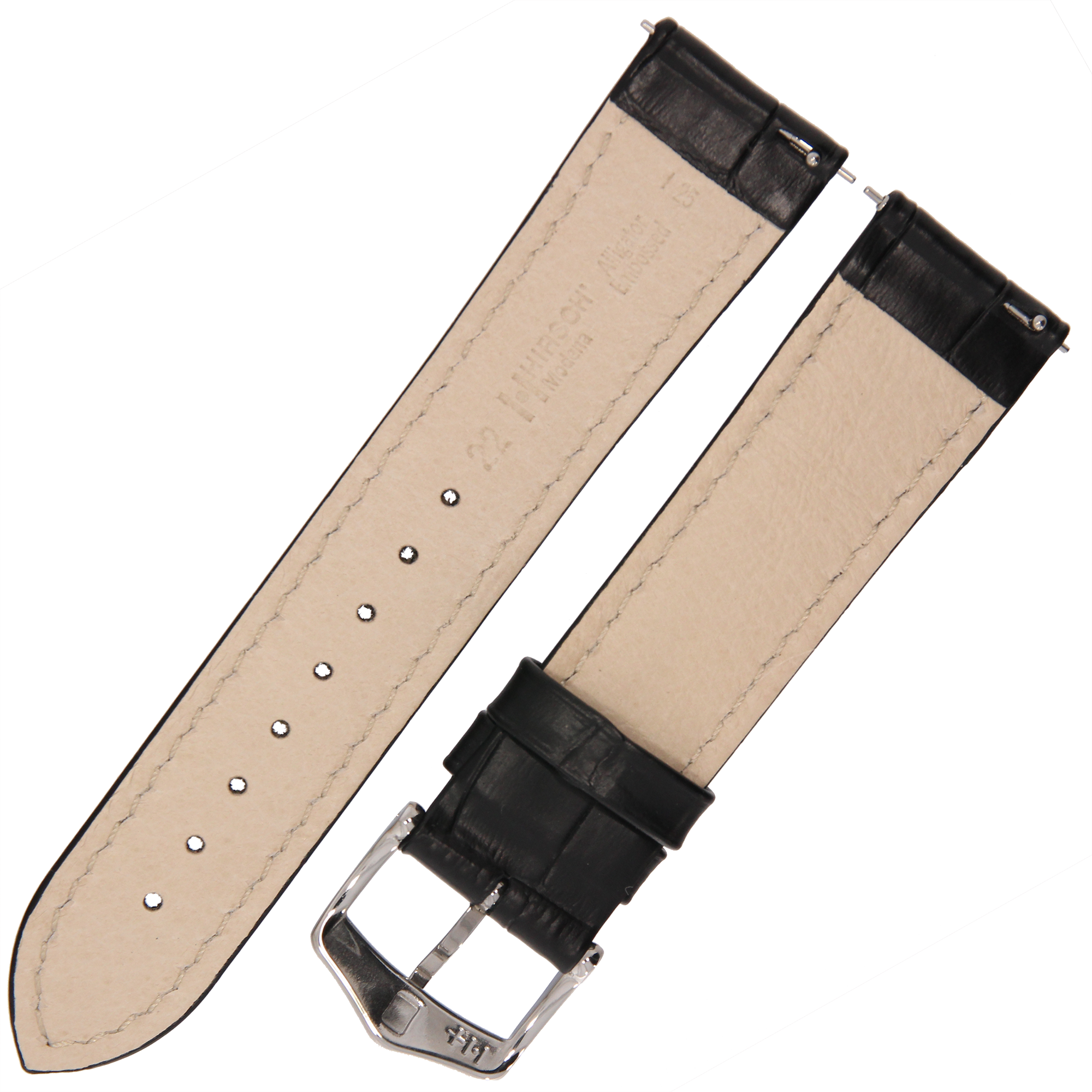 HIRSCH Modena L - CZARNY - 22mm - Skórzany pasek do zegarka ze strukturą Krokodyla