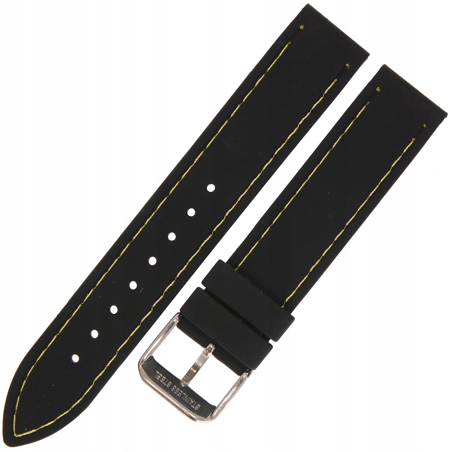 Pasek silikonowy, w kolorze czarnym z przeszyciem w kolorze żółtym i ozdobnym perforowaniem.