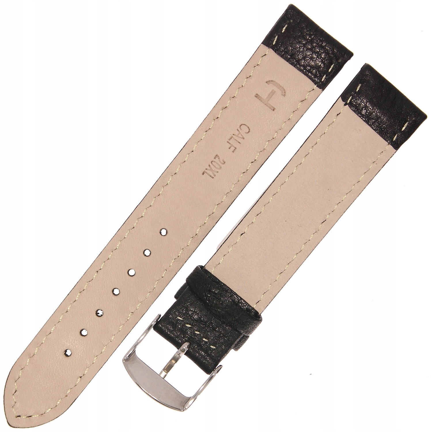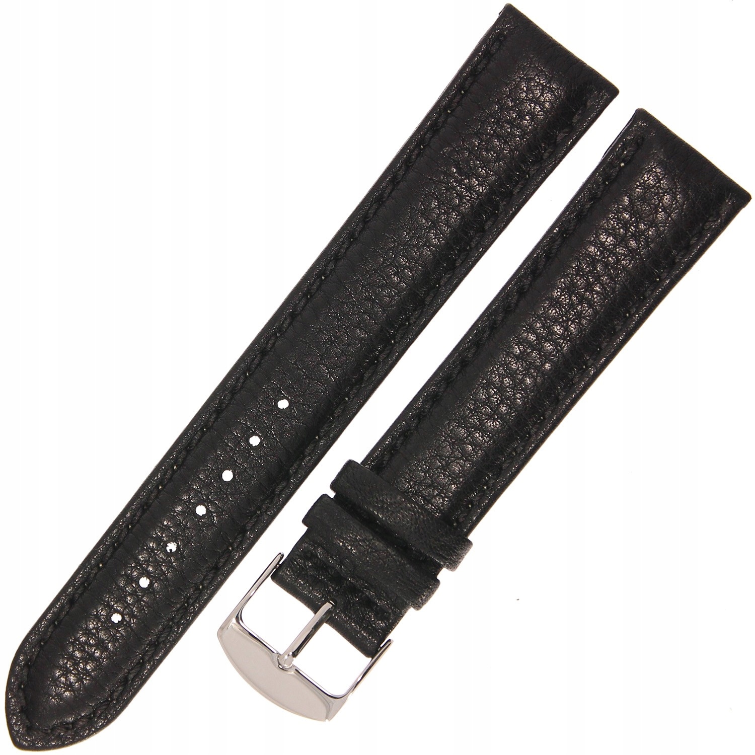 HORIDO 0074L - CZARNY - 20mm - Skórzany pasek do zegarka o strukturze Bizona