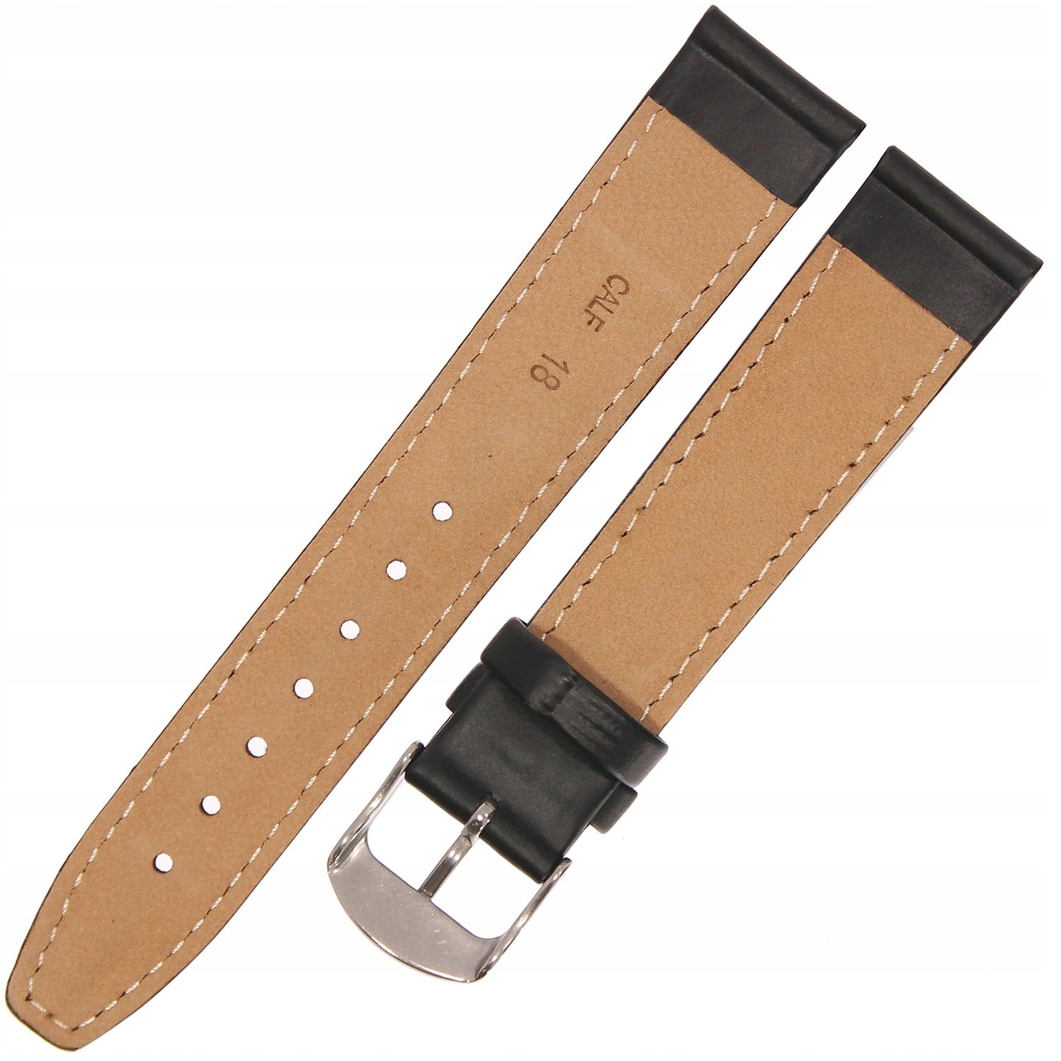HORIDO 0077 - CZARNY - 18mm - Skórzany pasek do zegarka o strukturze Gładkiej