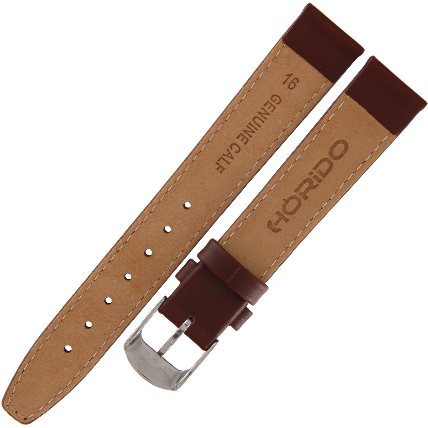 HORIDO 0077 - CIEMNY BRĄZ - 16mm - Skórzany pasek do zegarka o strukturze Gładkiej