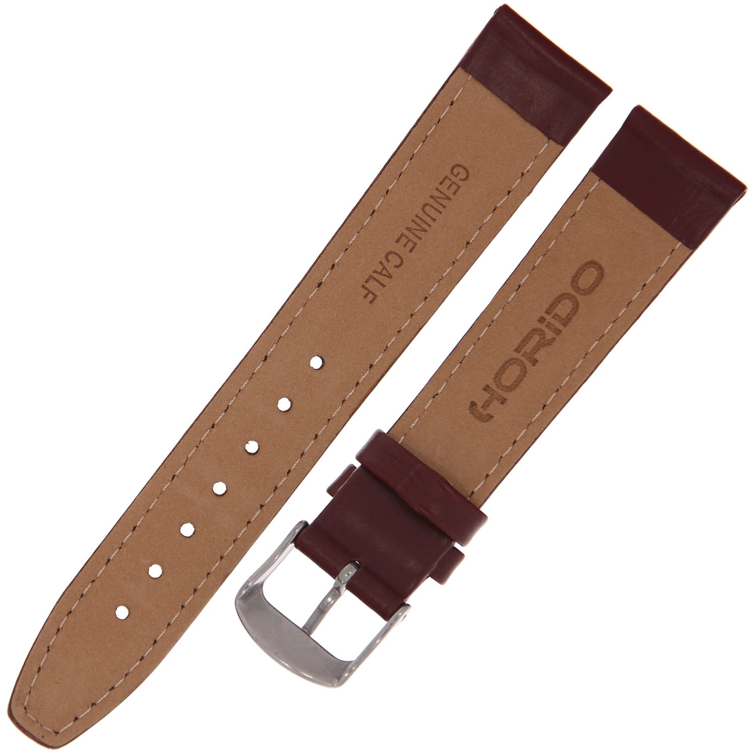 HORIDO 0077 - CIEMNY BRĄZ - 18mm - Skórzany pasek do zegarka o strukturze Gładkiej