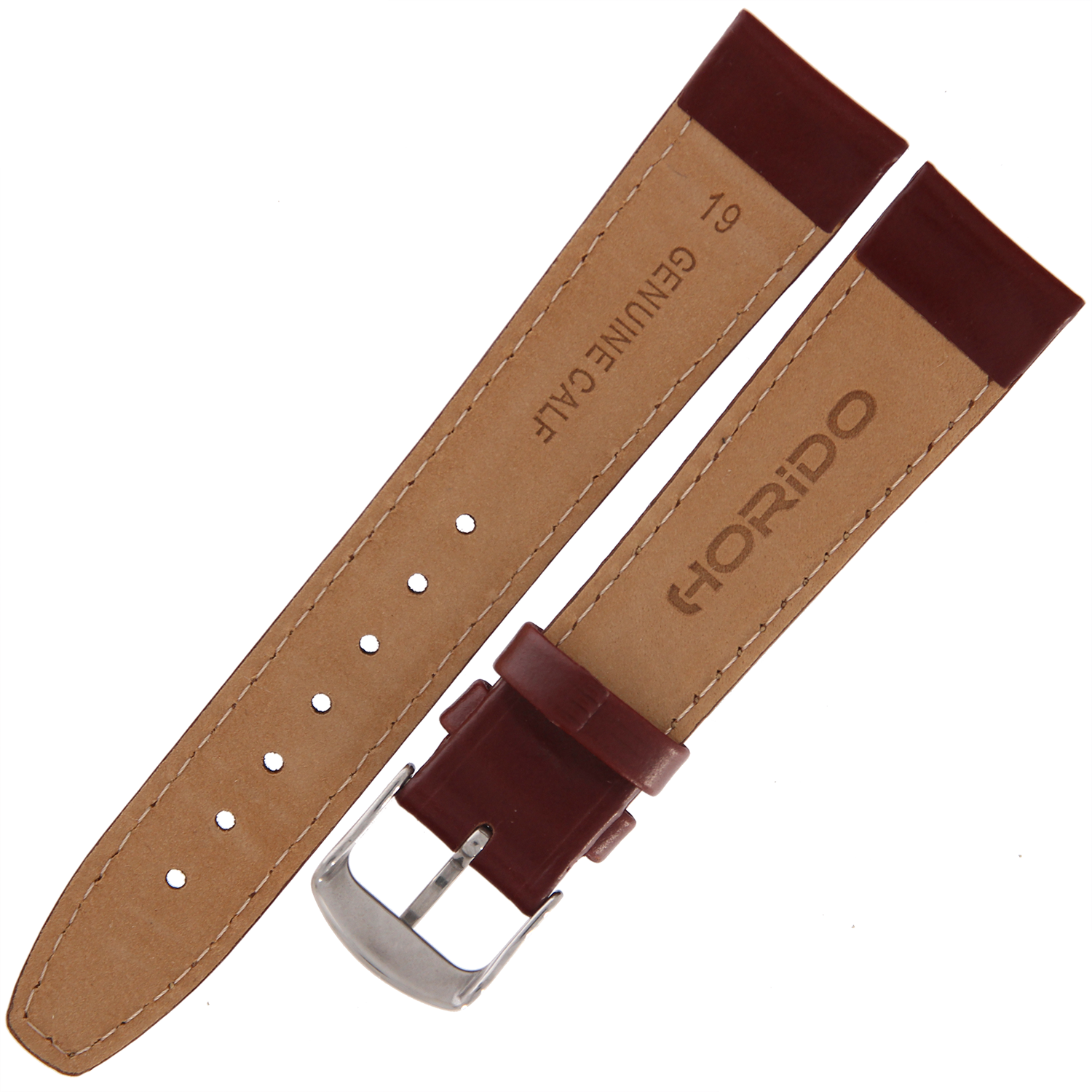HORIDO 0077 - CIEMNY BRĄZ - 19mm - Skórzany pasek do zegarka o strukturze Gładkiej