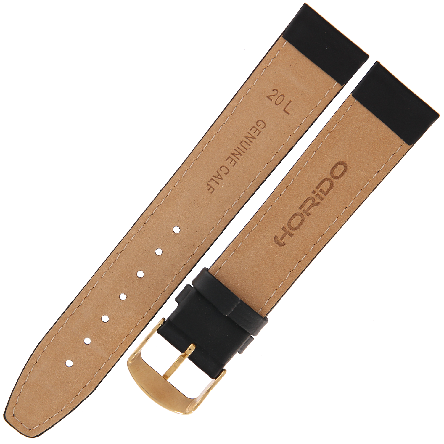 HORIDO 0077L - CZARNY - 20mm - Skórzany pasek do zegarka o strukturze Gładkiej