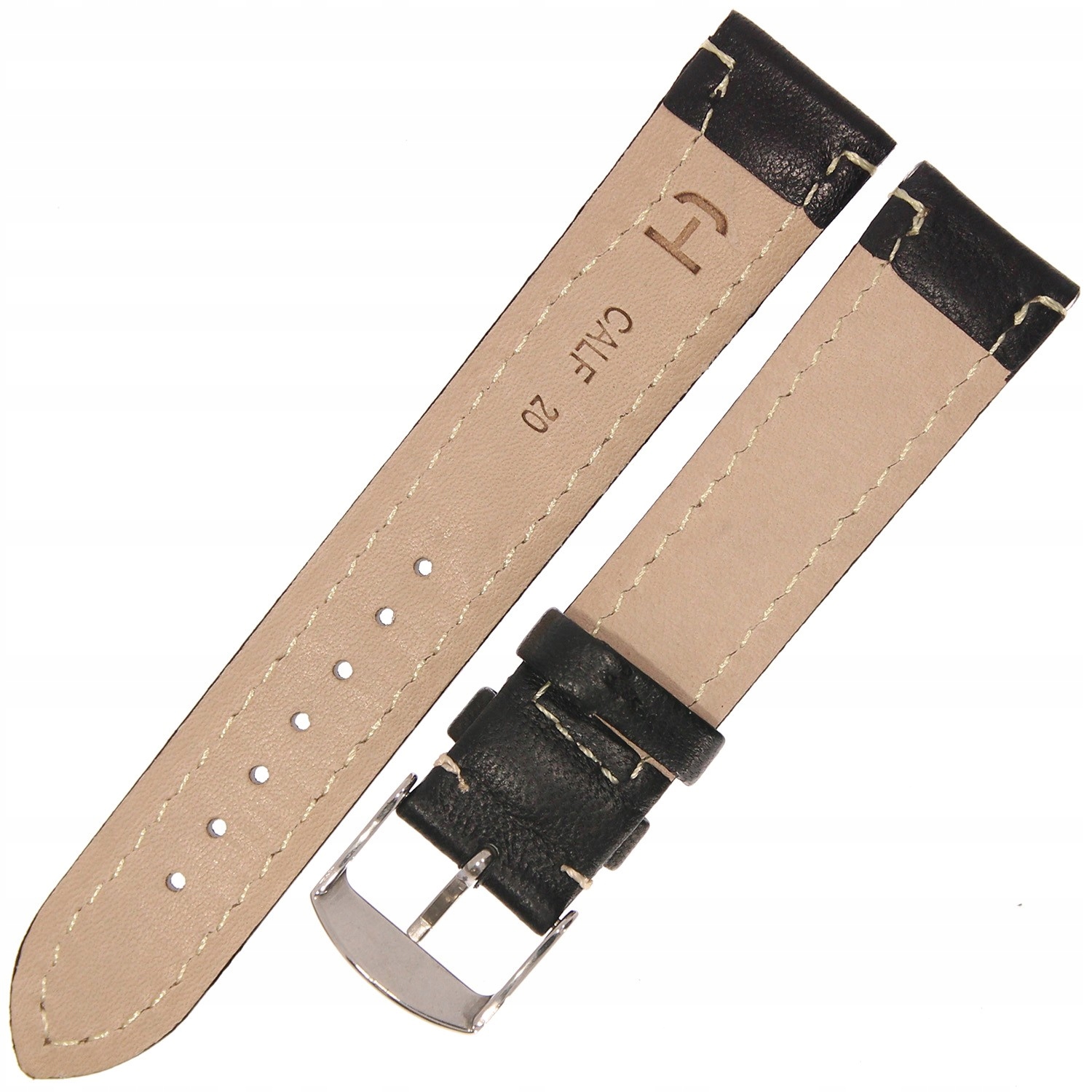 HORIDO 0079 - CZARNY - 20mm - Skórzany pasek do zegarka