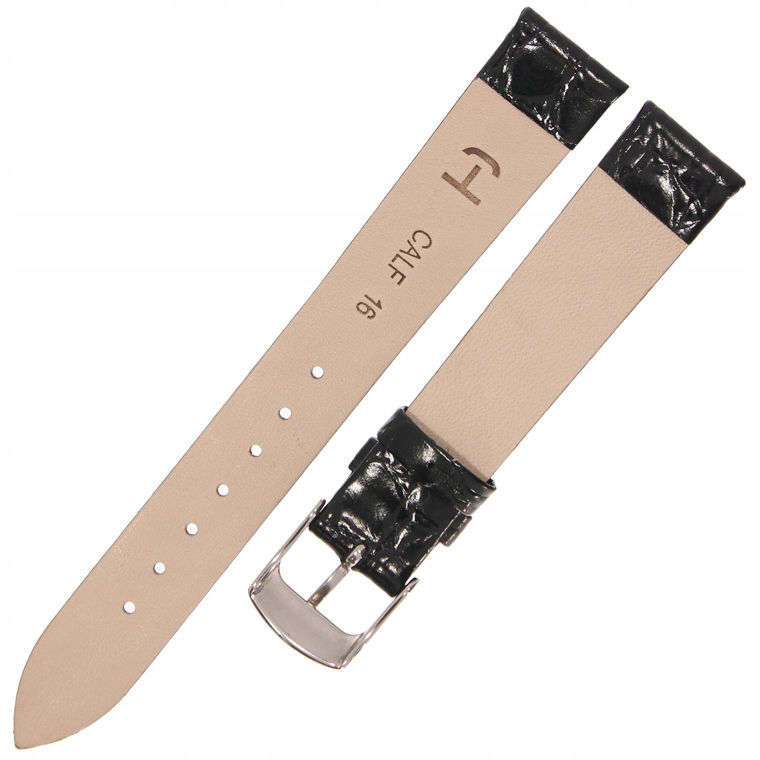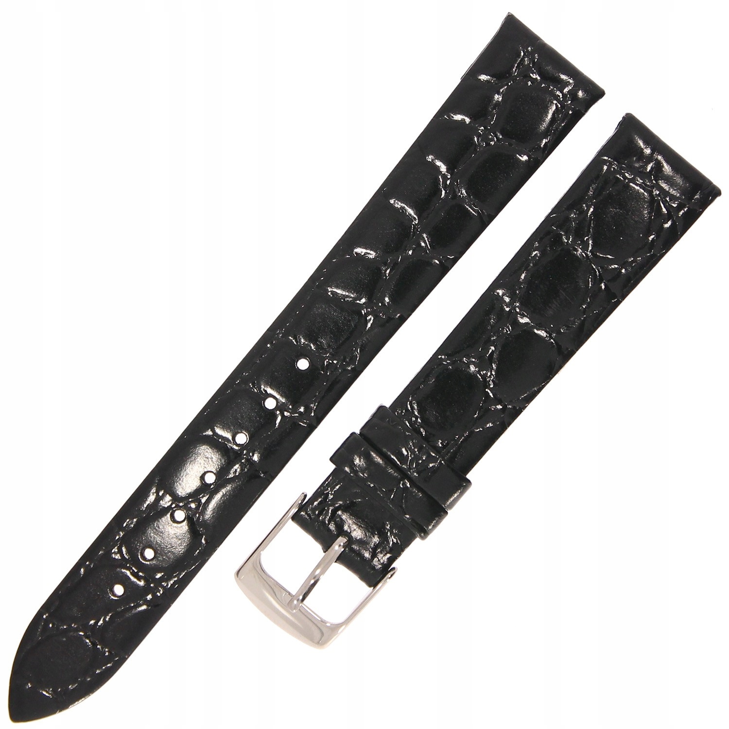 HORIDO 0117 - CZARNY - 16mm - Skórzany pasek do zegarka o strukturze Krokodyla