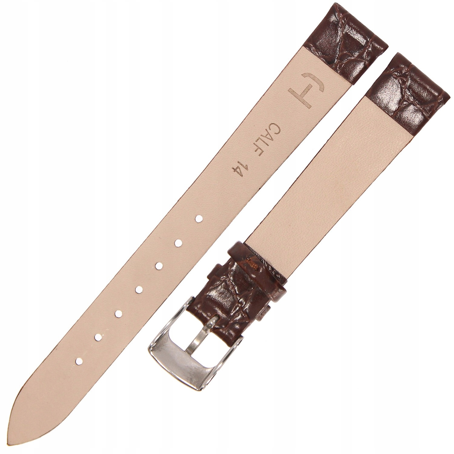 HORIDO 0117 - CIEMNY BRĄZ - 14mm - Skórzany pasek do zegarka o strukturze Krokodyla