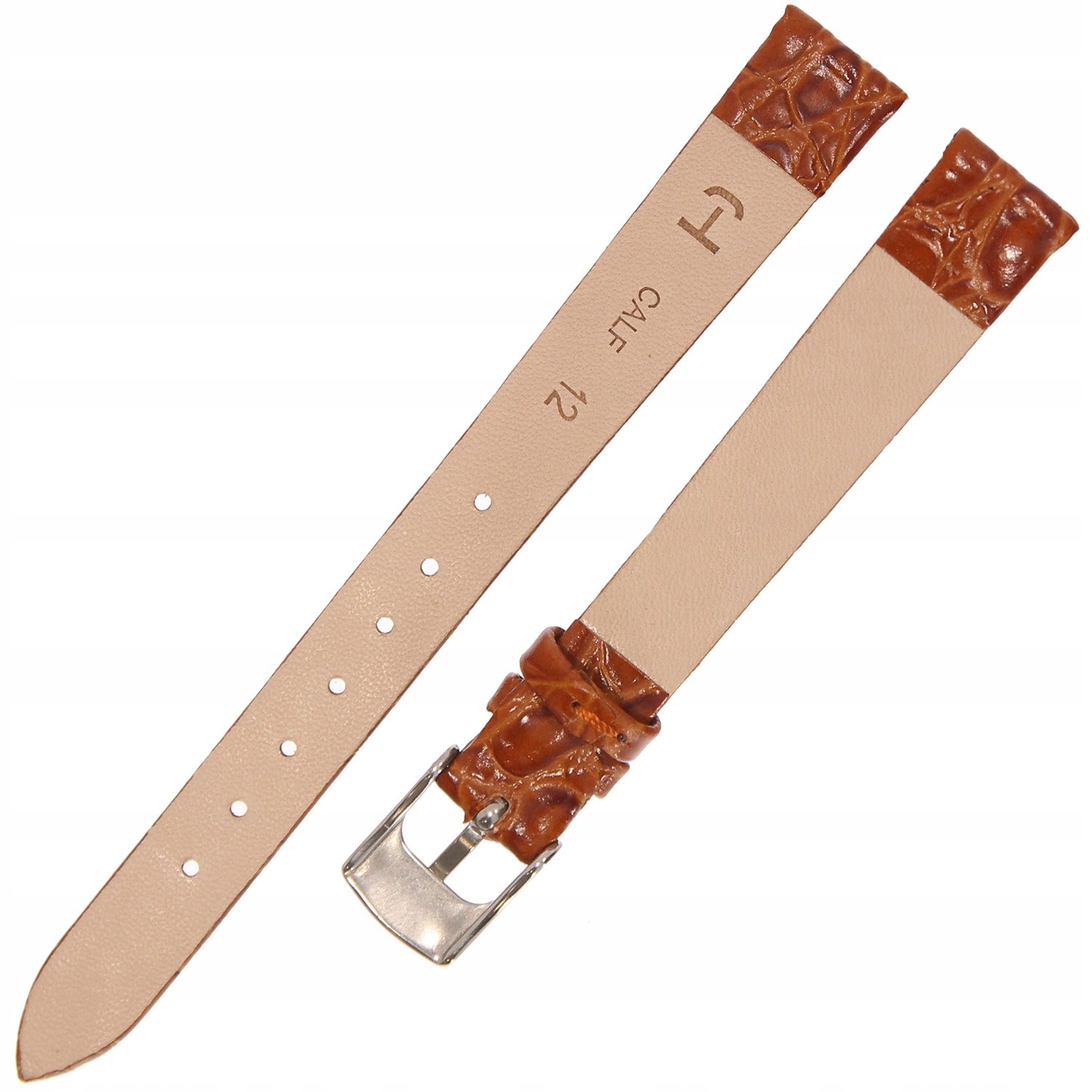 HORIDO 0117 - ŚREDNI BRĄZ - 12mm - Skórzany pasek do zegarka o strukturze Krokodyla