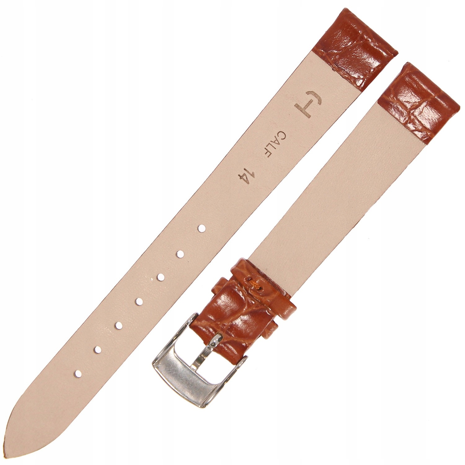 HORIDO 0117 - ŚREDNI BRĄZ - 14mm - Skórzany pasek do zegarka o strukturze Krokodyla