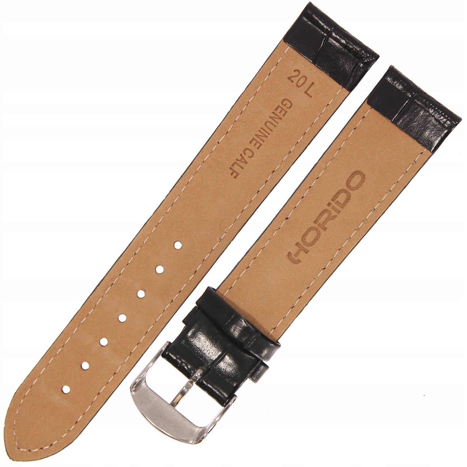 HORIDO 1320L - CZARNY - 20mm - Skórzany pasek do zegarka