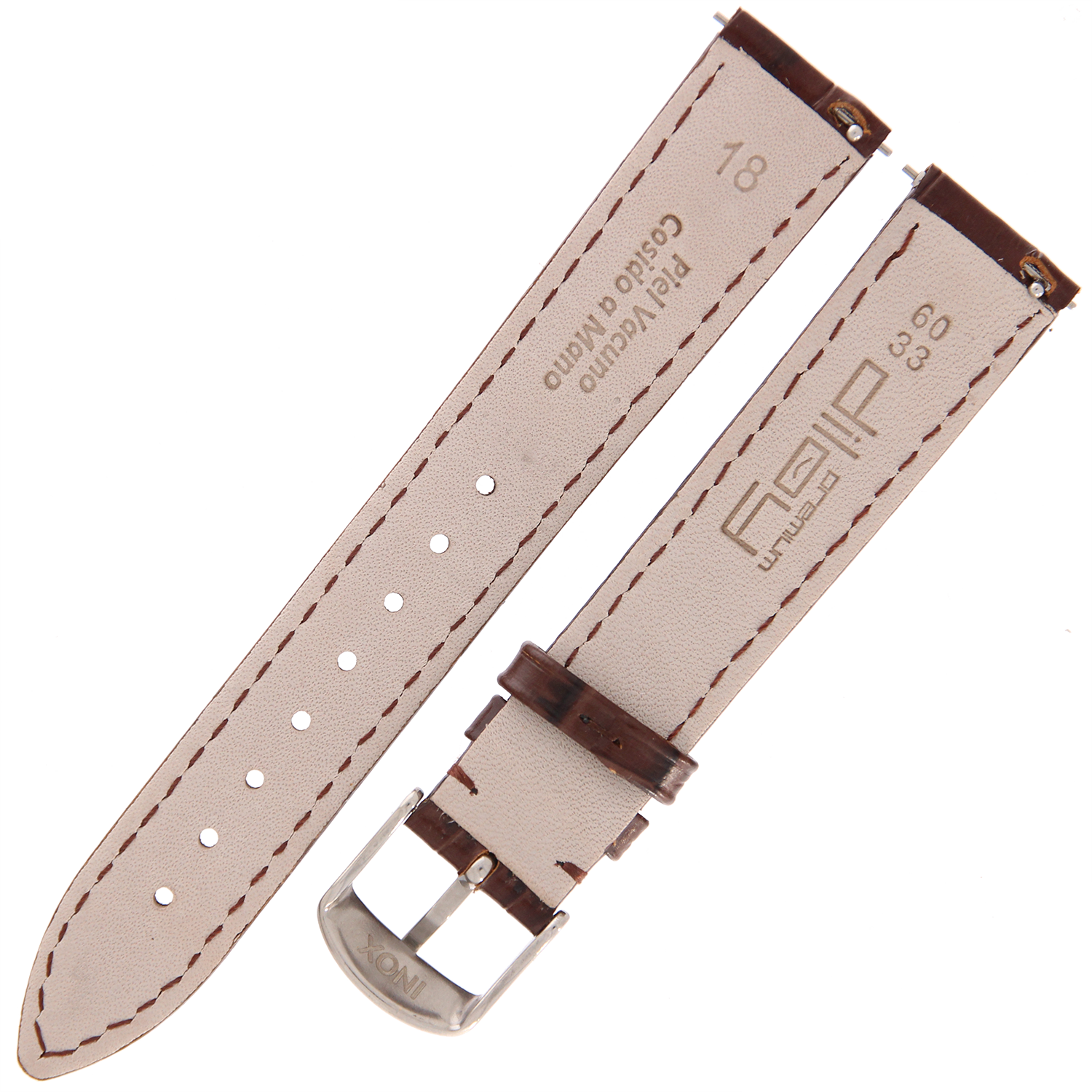 DILOY 424 - CIEMNY BRĄZ - 18mm - Skórzany pasek do zegarka o strukturze krokodyla