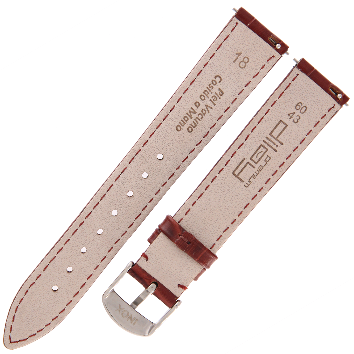DILOY 424 - ŚREDNI BRĄZ - 18mm - Skórzany pasek do zegarka o strukturze krokodyla
