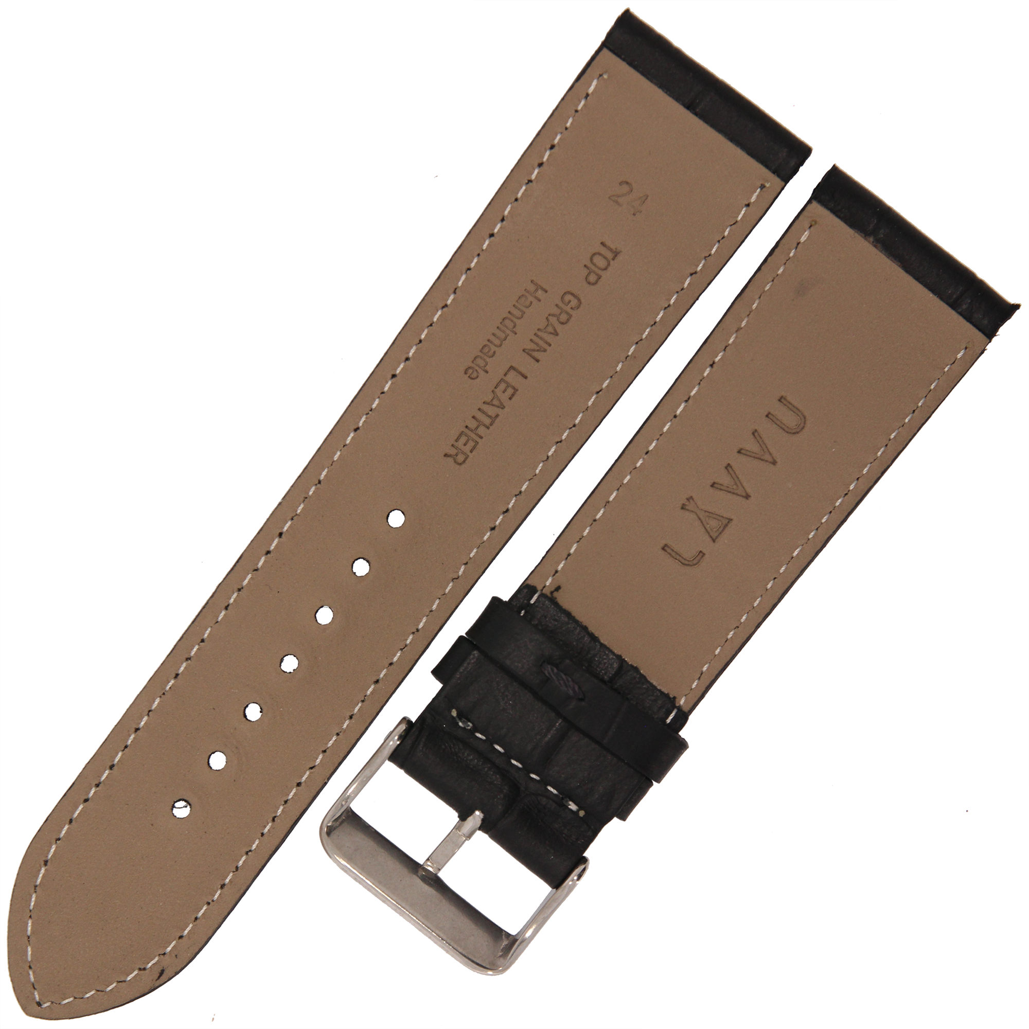 LAVVU Croco LSJUB24 - 24mm - CZARNY - Skórzany pasek do zegarka