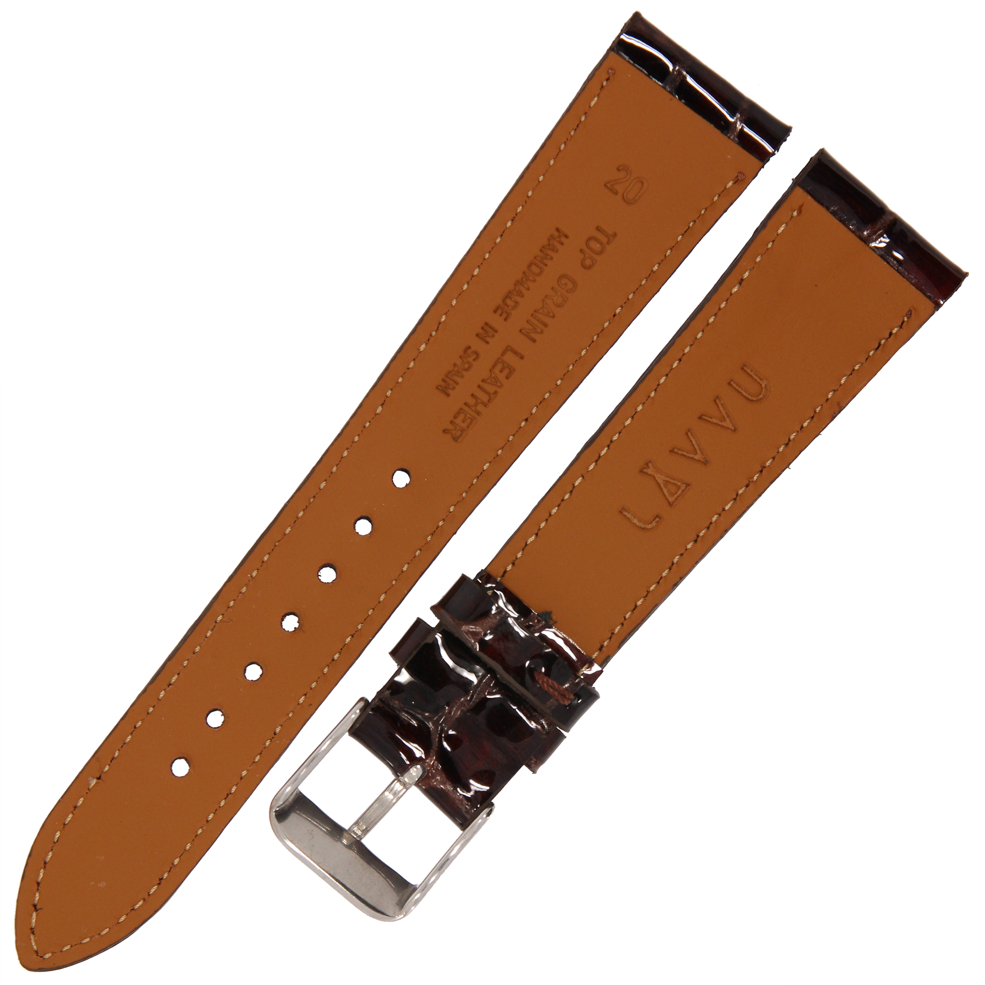 LAVVU Croco Ocala LSAGC18 - 18mm - CIEMNY BRĄZ - Skórzany pasek do zegarka