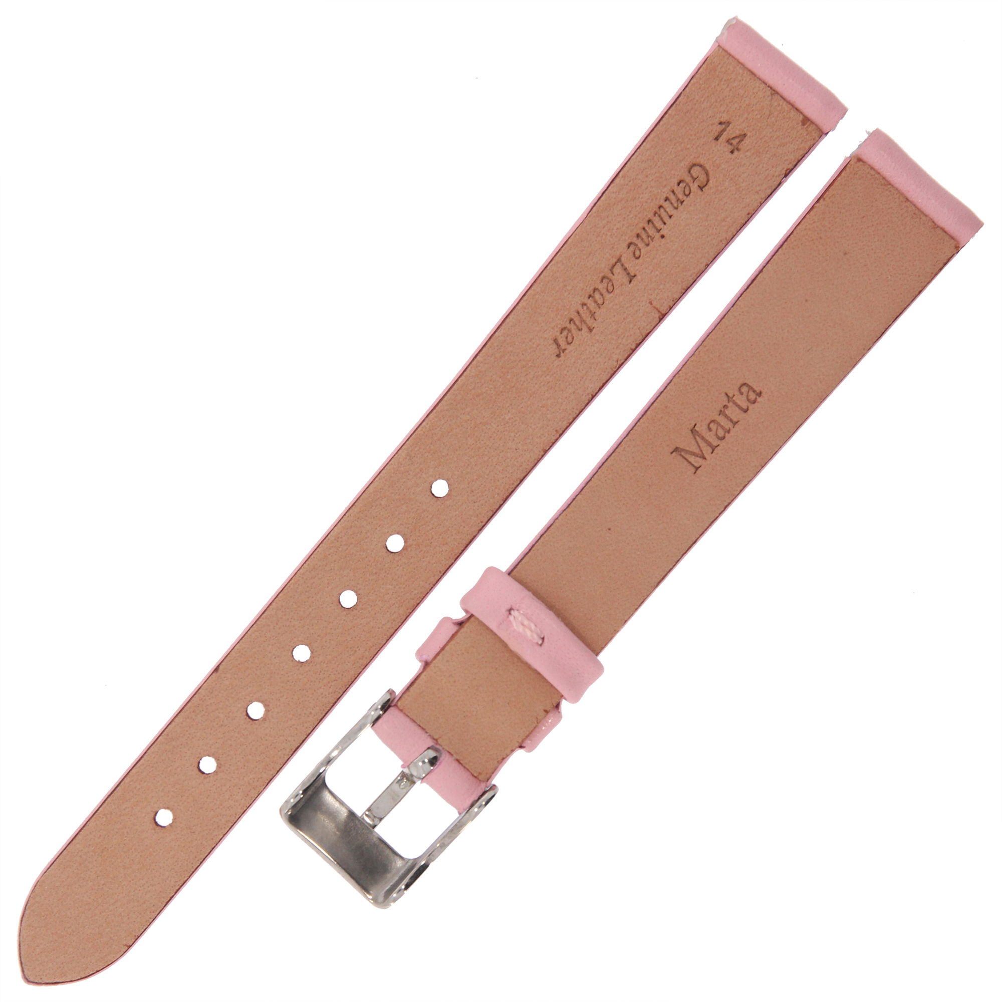 MARTA MG10 - 14mm - Gładki - RÓŻOWY - Skórzany pasek do zegarka