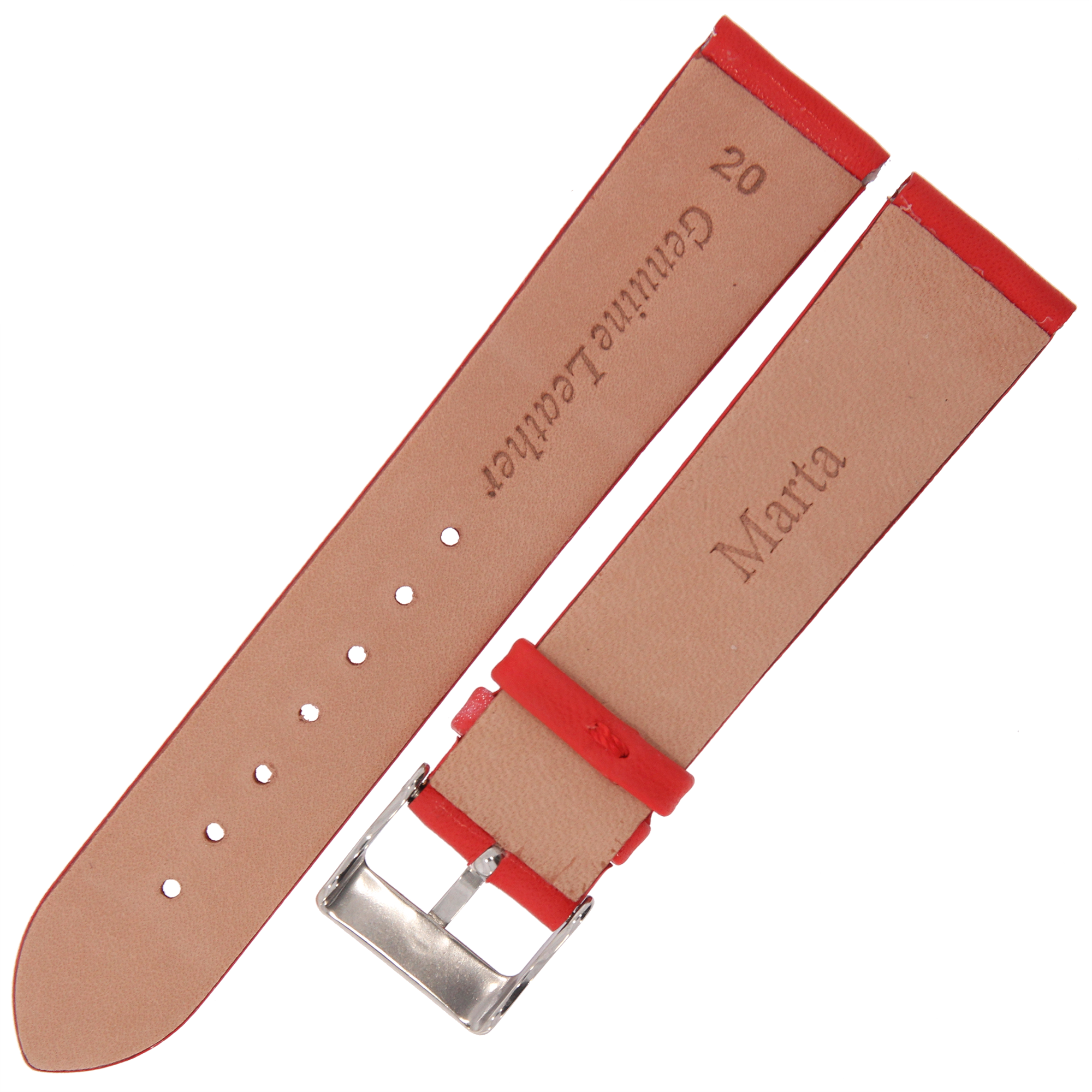 MARTA MG3 - 20mm - Gładki - CZERWONY - Skórzany pasek do zegarka