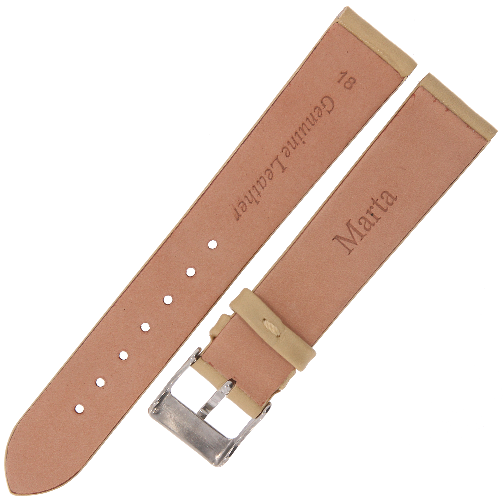 MARTA MG7 - 18mm - Gładki - BEŻOWY - Skórzany pasek do zegarka