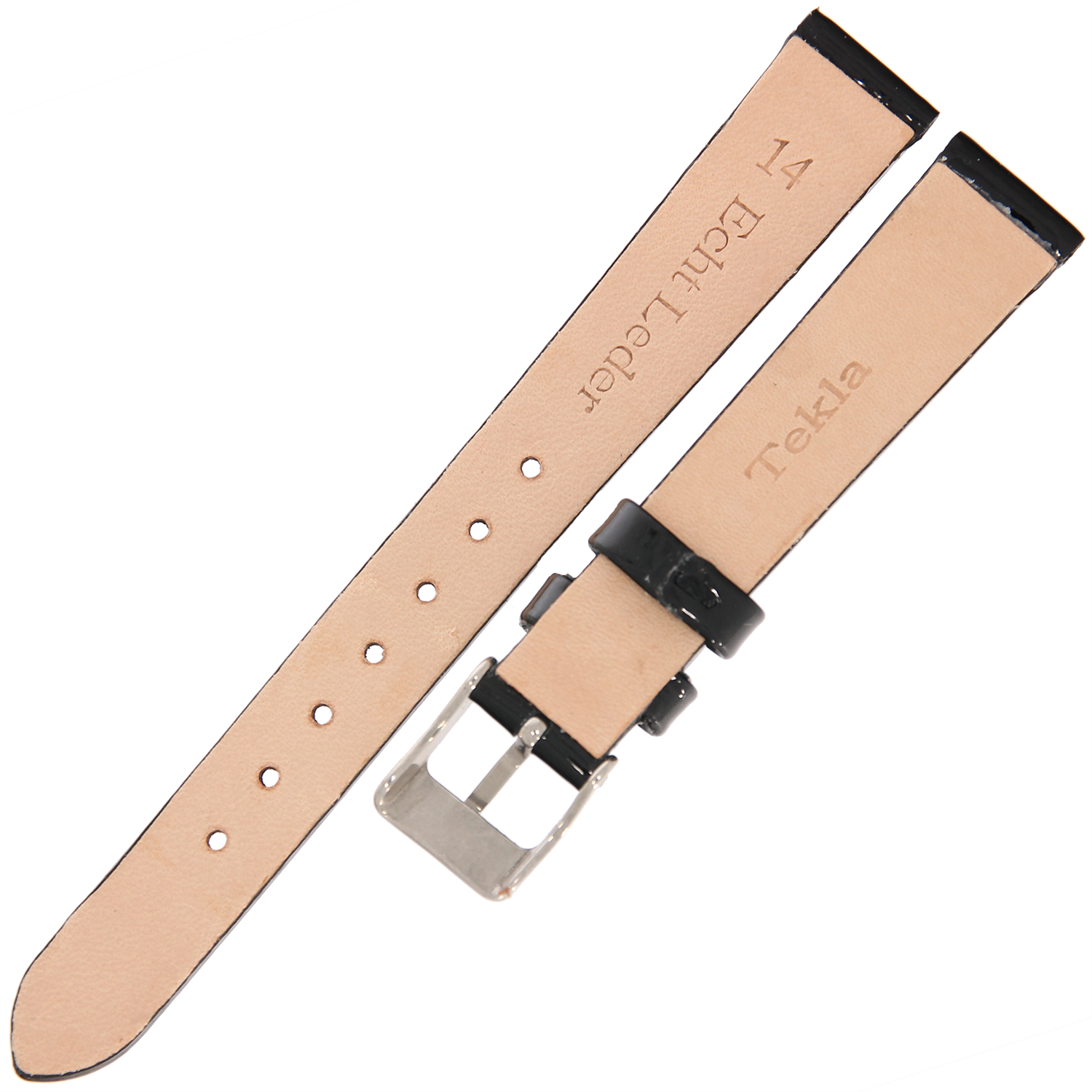 TEKLA G1P - 14mm - CZARNY (lakierowany) - Skórzany pasek do zegarka