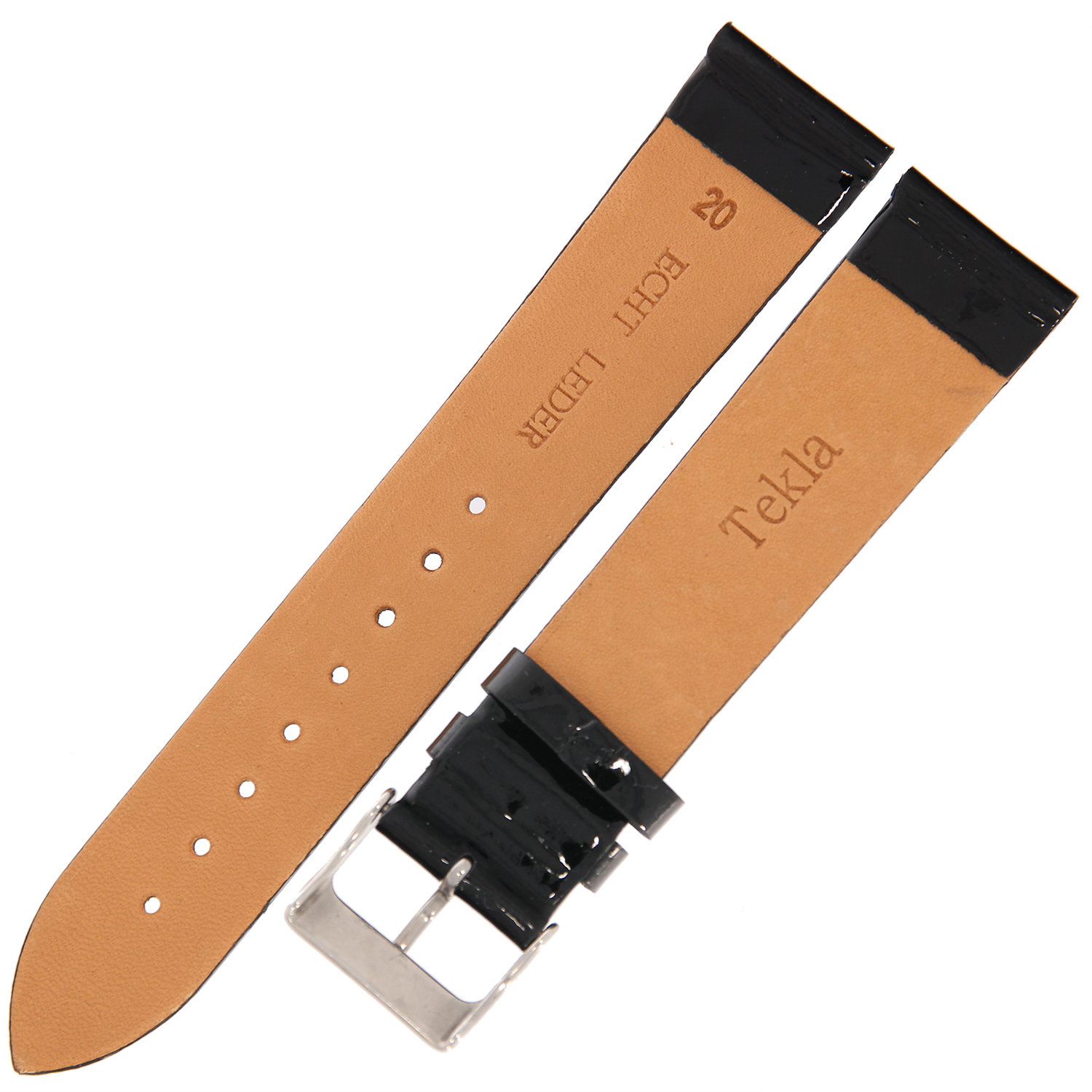 TEKLA G1P - 20mm - CZARNY (lakierowany) - Skórzany pasek do zegarka