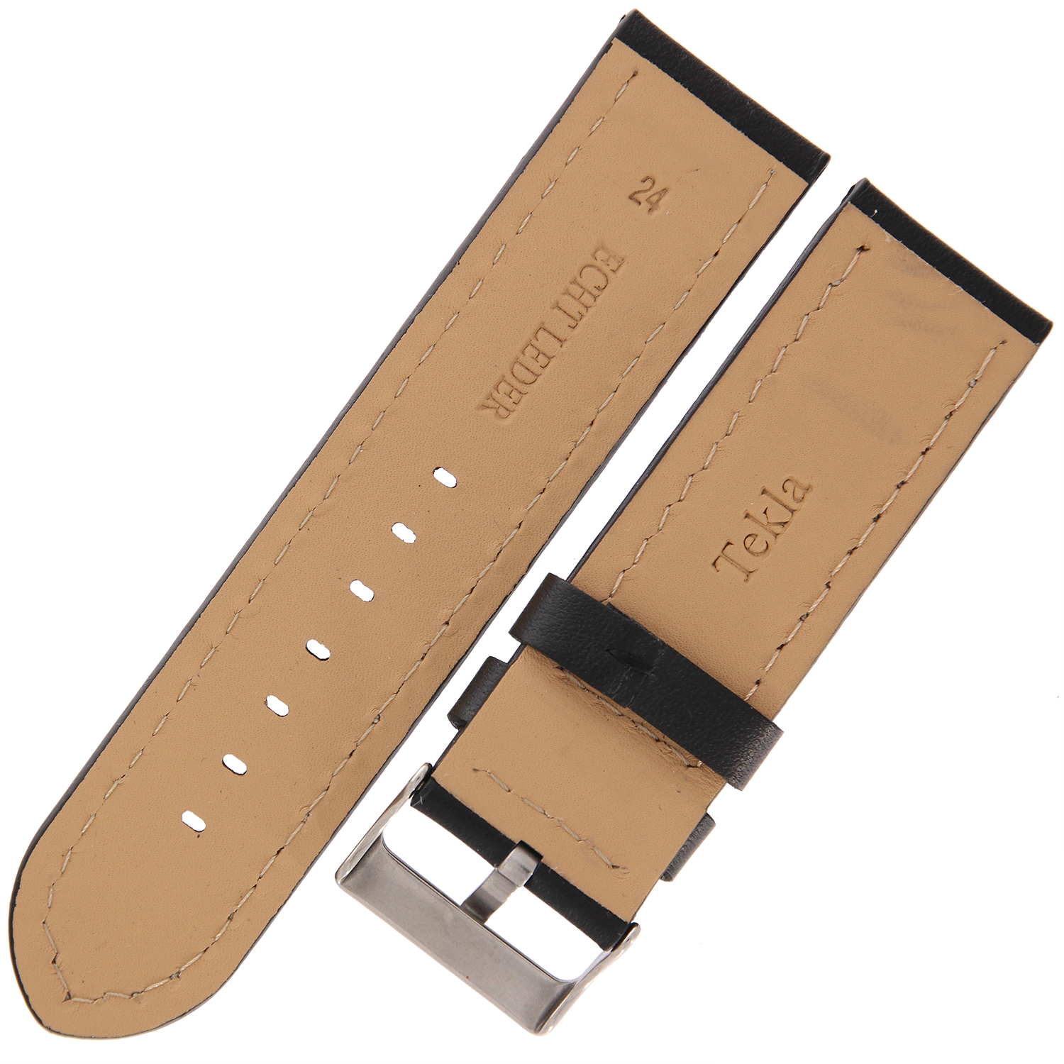 TEKLA PV11 - 24mm - Równy - CZARNY - Skórzany pasek do zegarka