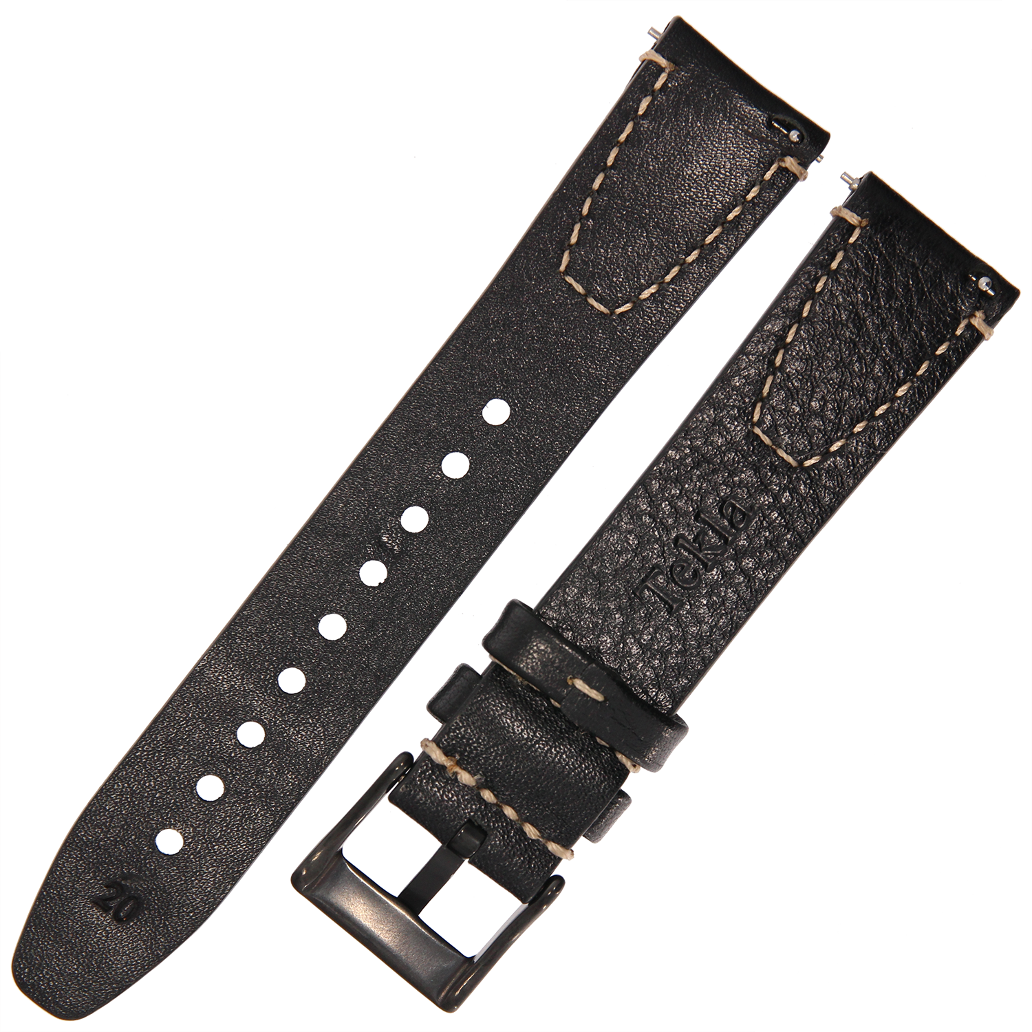 TEKLA TI11 - 24mm - CZARNY / p.Białe - Skórzany pasek do zegarka