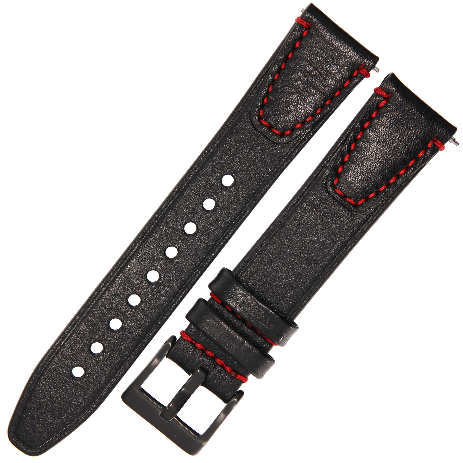 TEKLA TI12 - 18mm - CZARNY / p.Czerwone - Skórzany pasek do zegarka