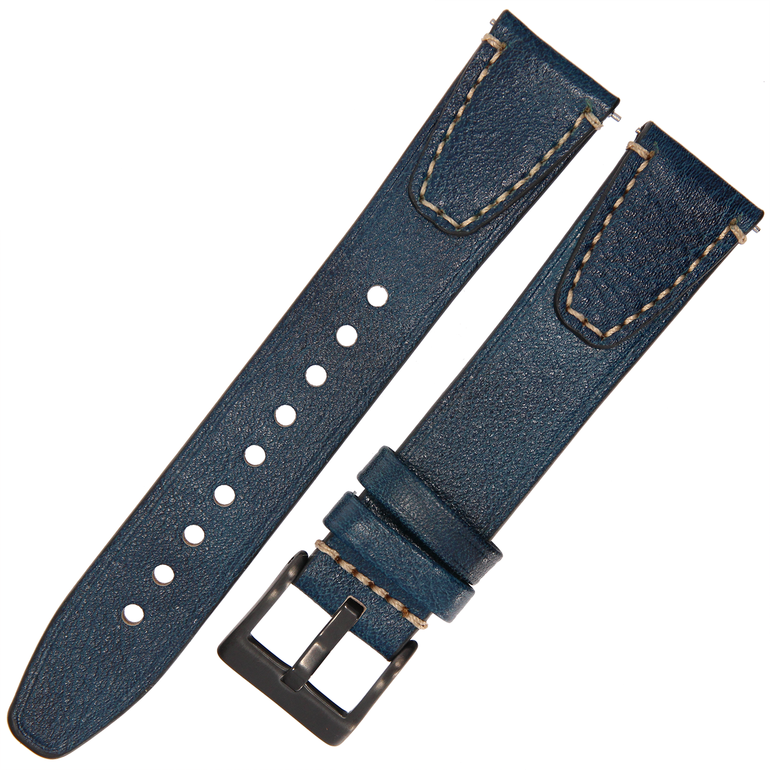 TEKLA TI41 - 24mm - GRANATOWY / p.Białe - Skórzany pasek do zegarka