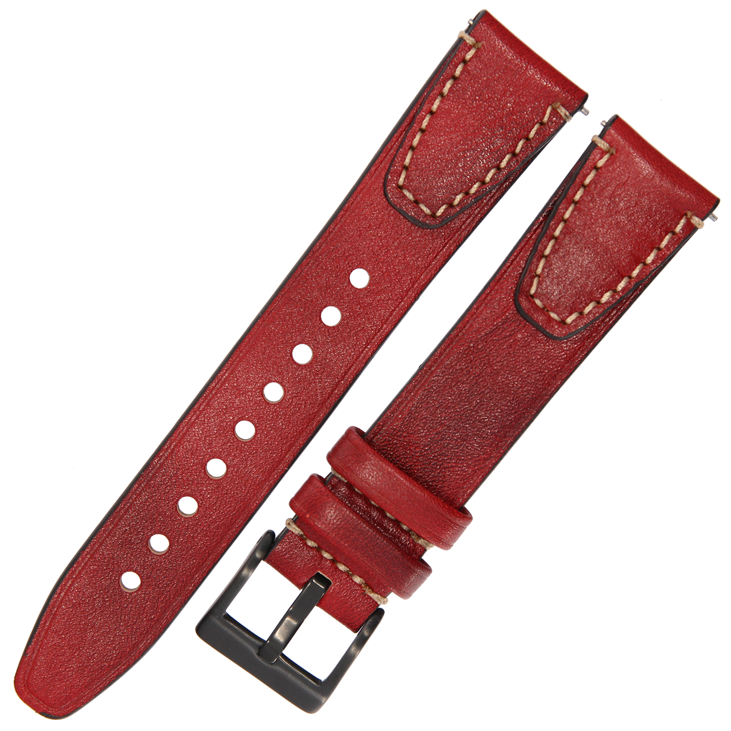 TEKLA TI91 - 18mm - BORDOWY / p.Białe - Skórzany pasek do zegarka