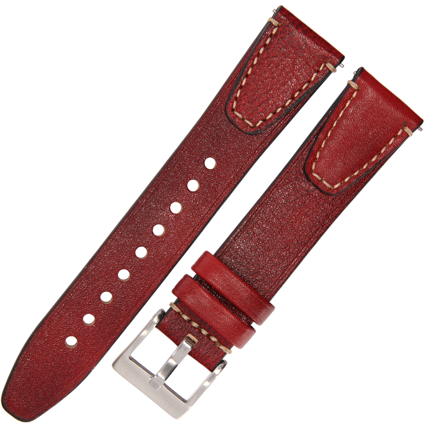 TEKLA TI91 - 24mm - BORDOWY / p.Białe - Skórzany pasek do zegarka