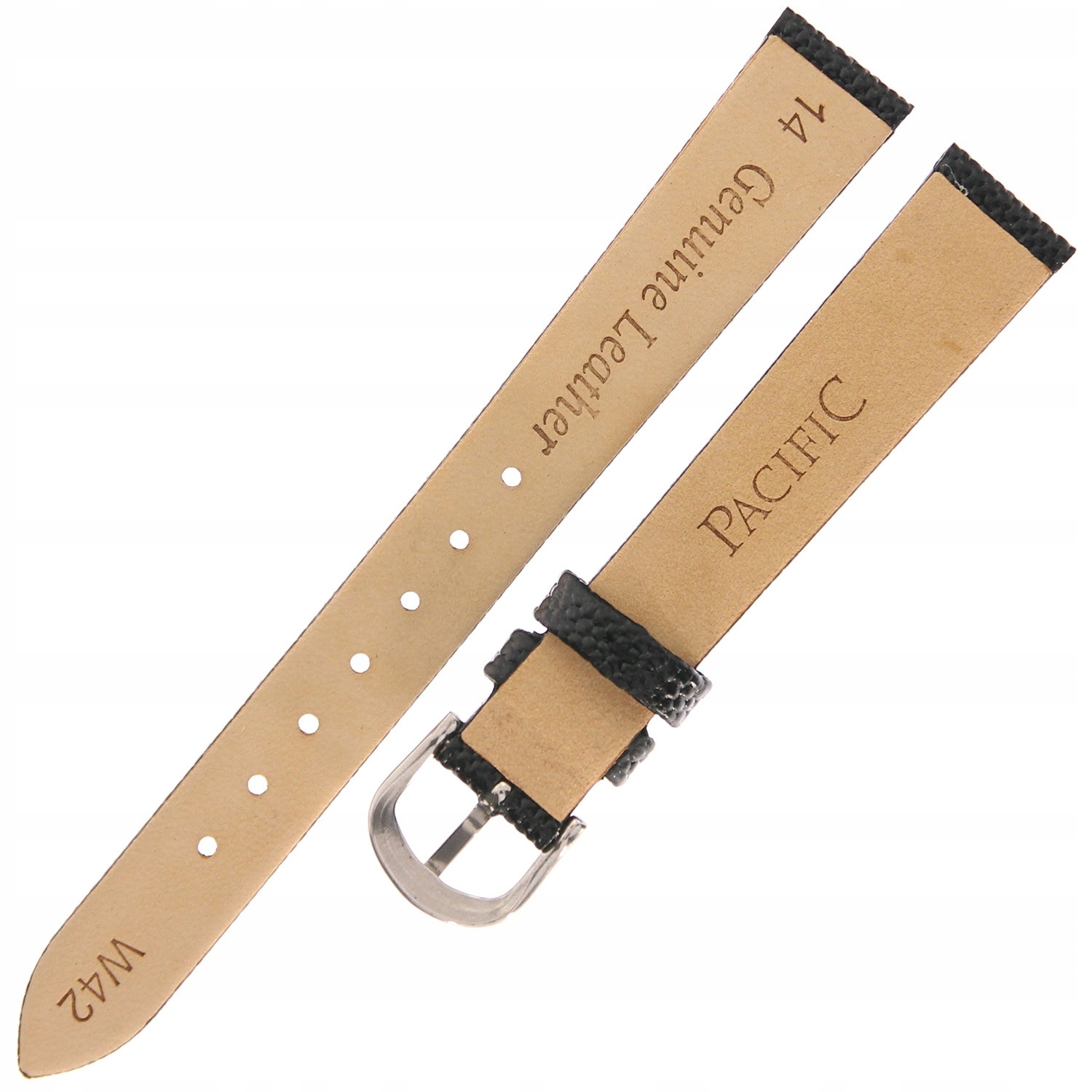 PACIFIC W42 - Czarny - 14mm - Skórzany pasek do zegarka o strukturze jaszczurki