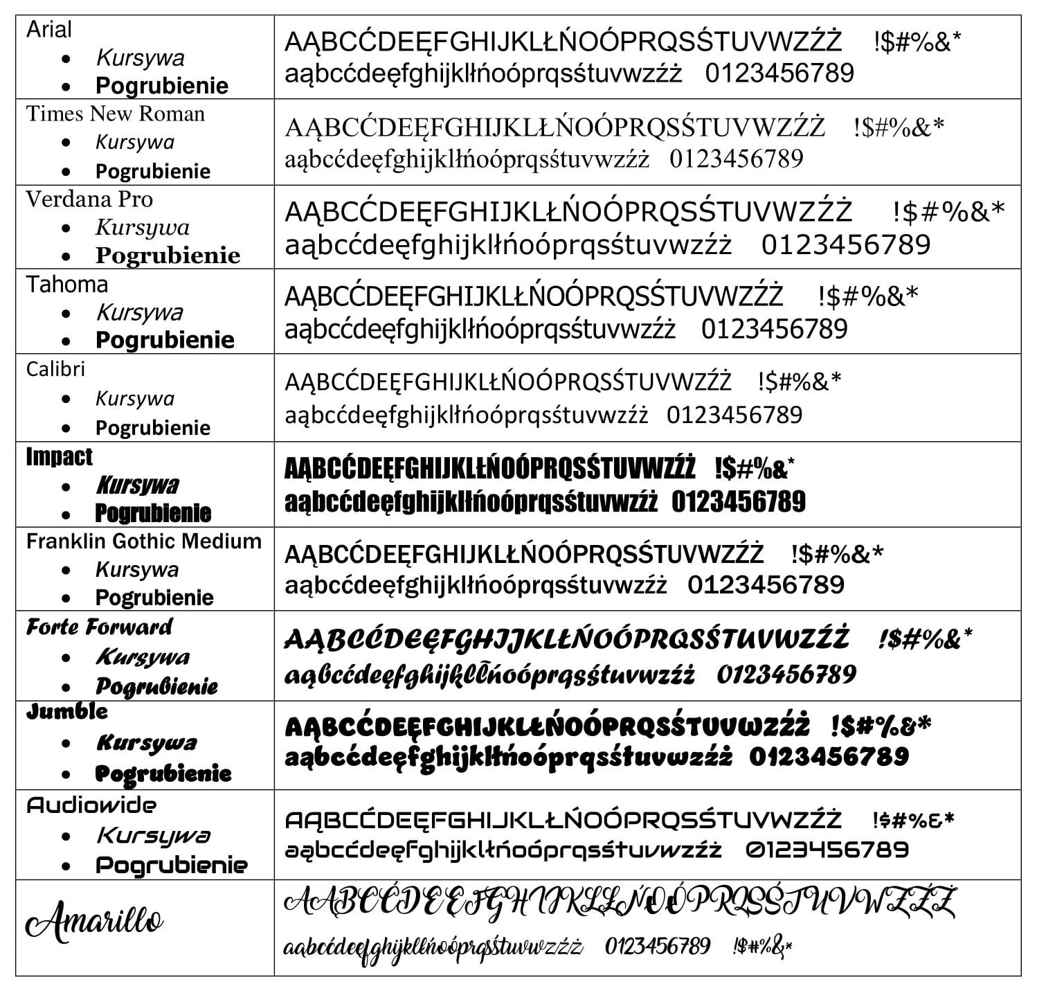 - Podać nazwę czcionki - (opcjonalnie),