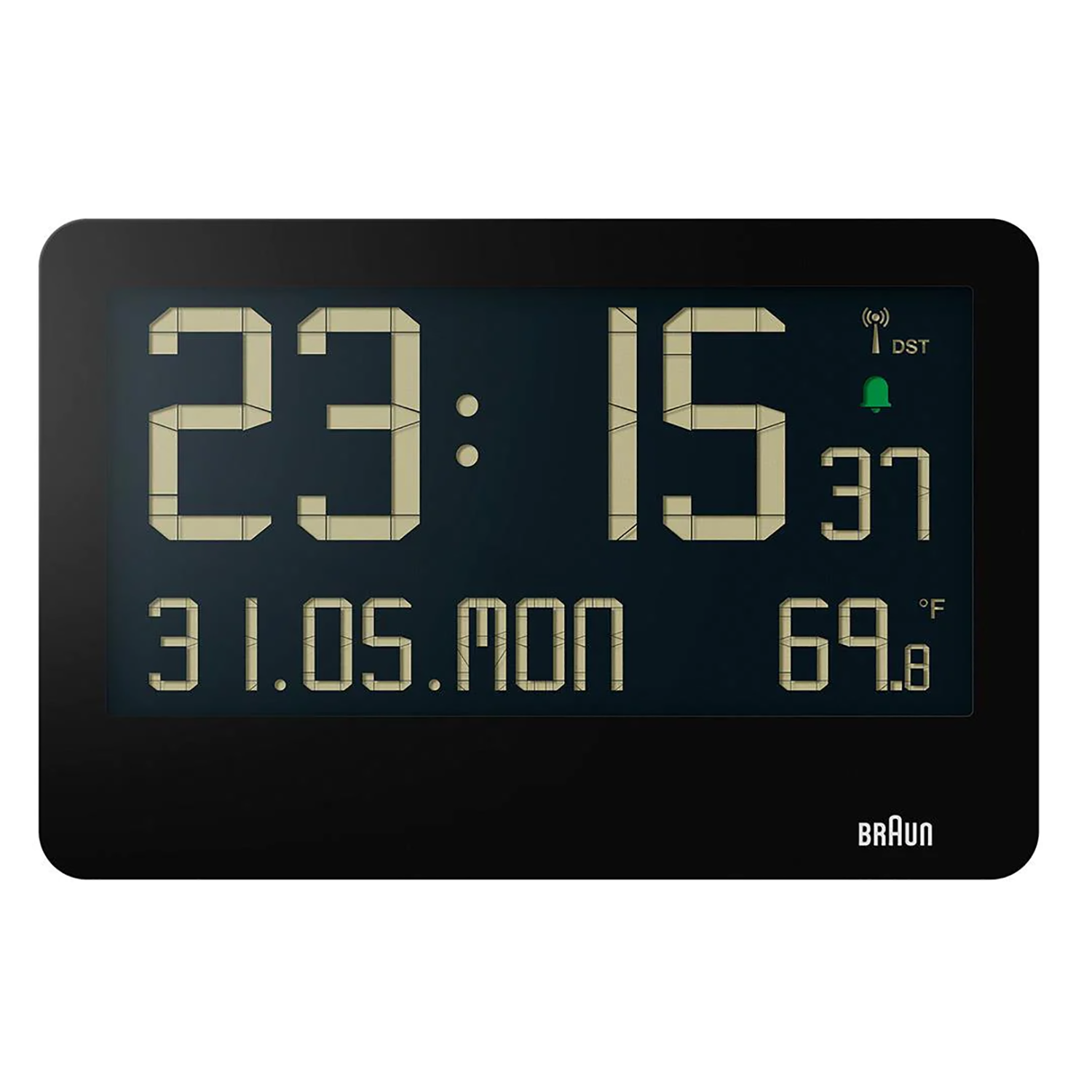 BRAUN BC14 - Zegar cyfrowy z datą, temperaturą i funkcją budzika.