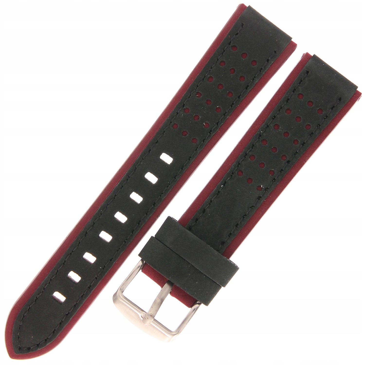 Pasek skórzany PACIFIC W80-1/4-S - 20mm - Czarny/Czerwony