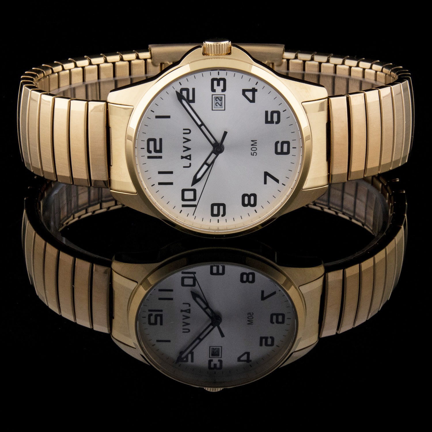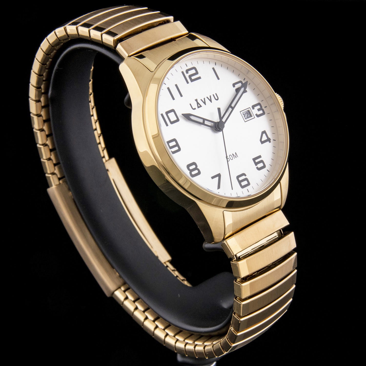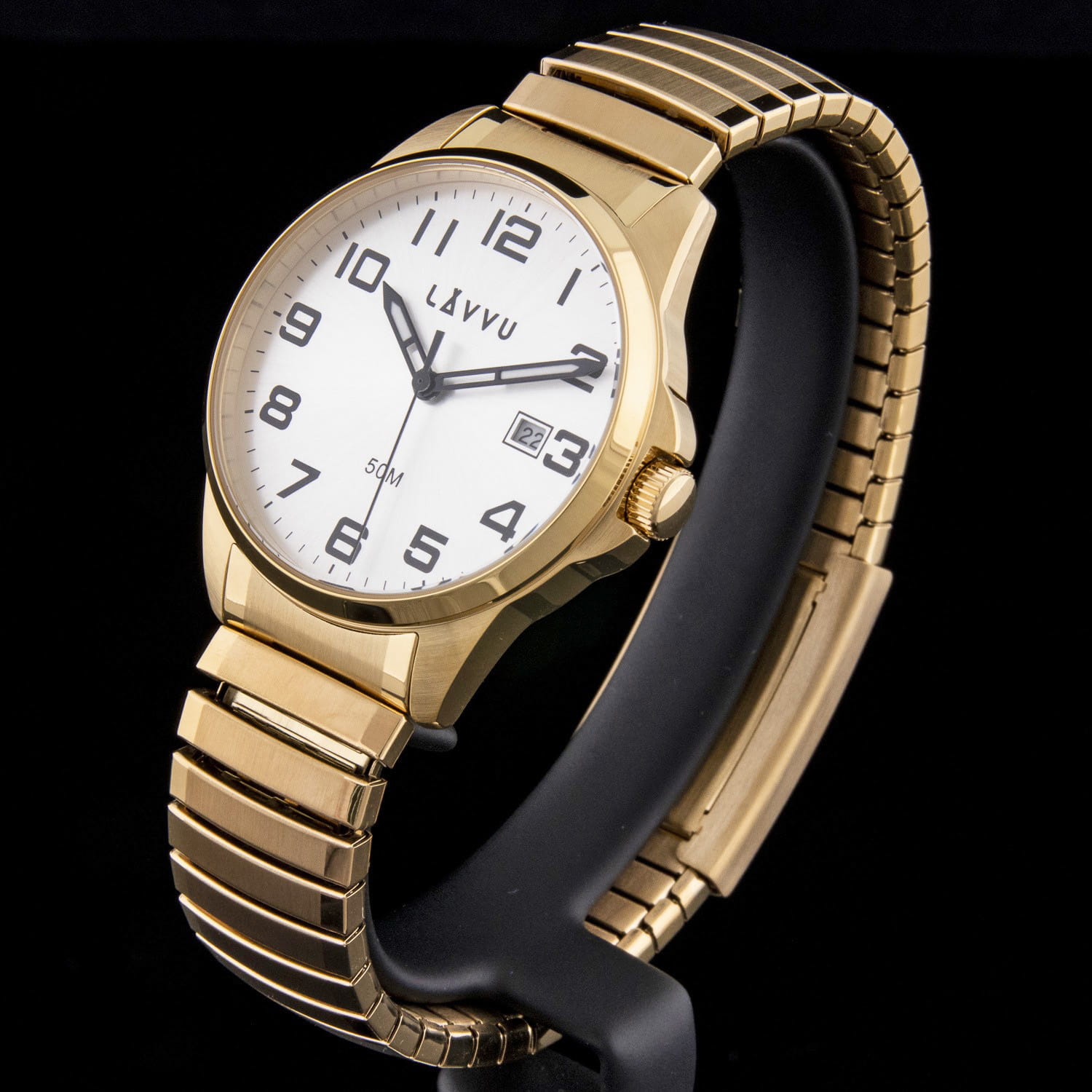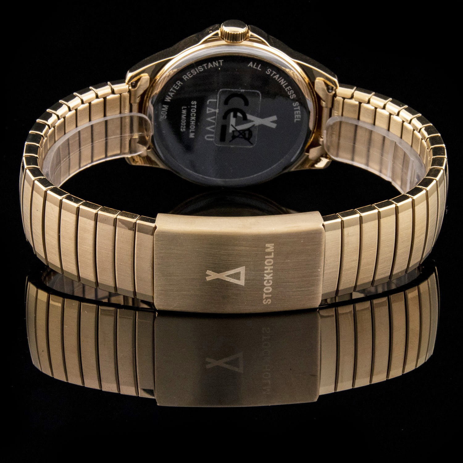 LAVVU LWM0025 - Stockholm Big Gold - Męski - Zegarek na bransolecie rozciąganej